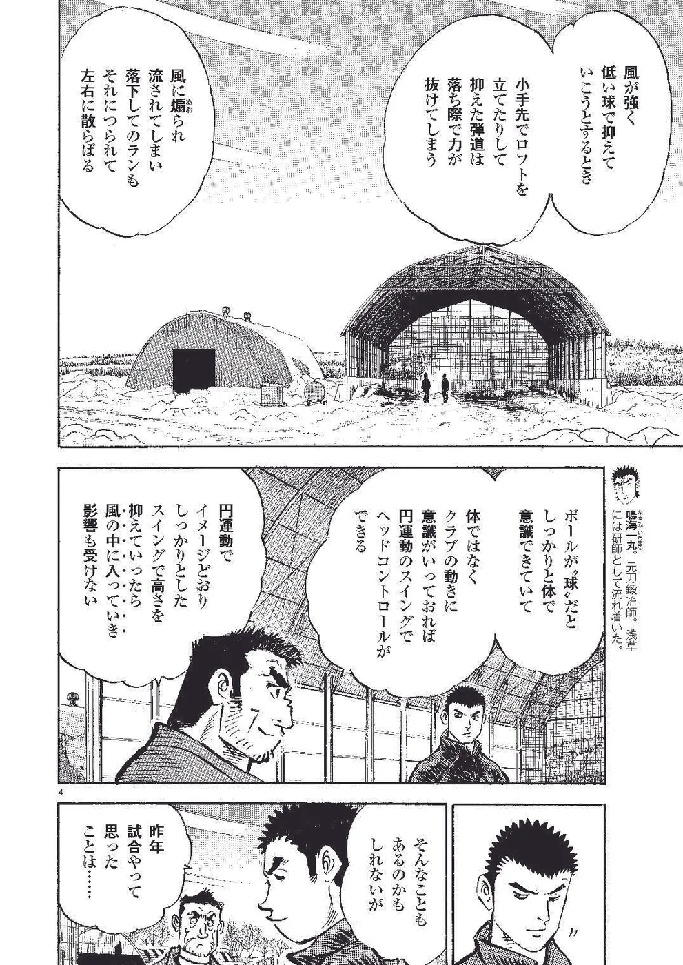 【第79巻あらすじ】プロゴルファーとして臨んだゴルフ日本シリーズJTカップで、最終日にようやく自分のゴルフスタイルを見つけ出し、イーブンパーまでスコアを戻してシーズンを終えた鳴海一丸。オフに入ると早速サンドウェッジ(SW)の自作、厳寒の釧路でのキャンプと、次のシーズンに向け準備を整えていた。だが、初ラウンドがシーズン開幕直前という状態で迎えた初戦、いきなり練習場でジャンボのSWでの技に見入られてしまった!