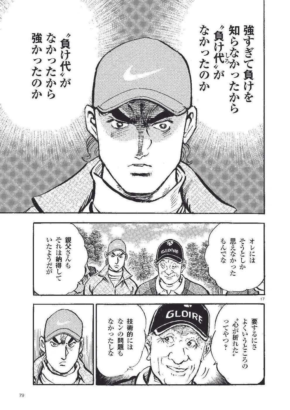 【第79巻あらすじ】プロゴルファーとして臨んだゴルフ日本シリーズJTカップで、最終日にようやく自分のゴルフスタイルを見つけ出し、イーブンパーまでスコアを戻してシーズンを終えた鳴海一丸。オフに入ると早速サンドウェッジ(SW)の自作、厳寒の釧路でのキャンプと、次のシーズンに向け準備を整えていた。だが、初ラウンドがシーズン開幕直前という状態で迎えた初戦、いきなり練習場でジャンボのSWでの技に見入られてしまった!