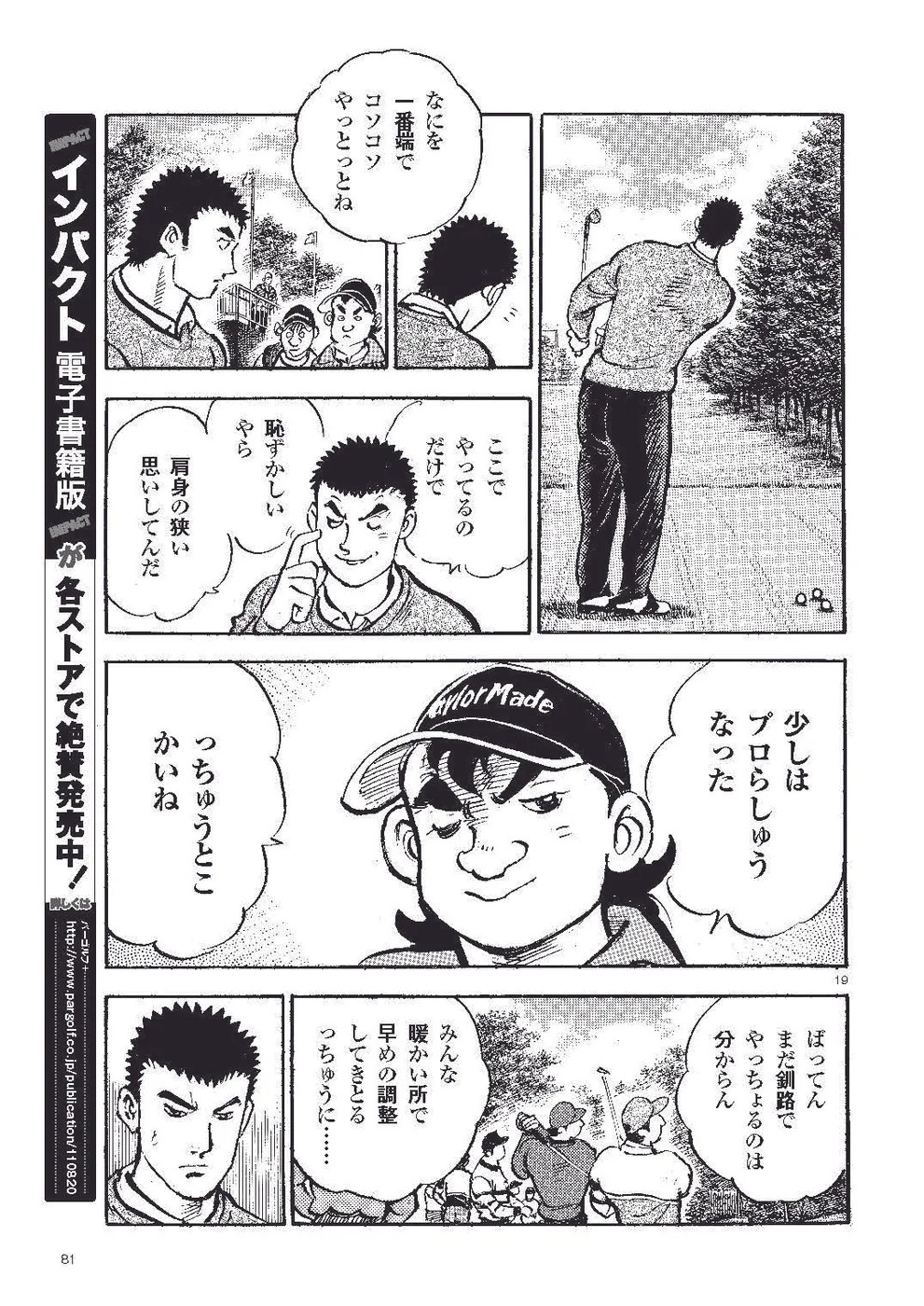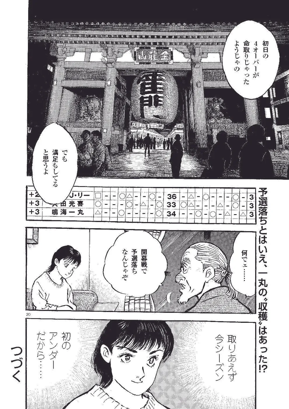 【第79巻あらすじ】プロゴルファーとして臨んだゴルフ日本シリーズJTカップで、最終日にようやく自分のゴルフスタイルを見つけ出し、イーブンパーまでスコアを戻してシーズンを終えた鳴海一丸。オフに入ると早速サンドウェッジ(SW)の自作、厳寒の釧路でのキャンプと、次のシーズンに向け準備を整えていた。だが、初ラウンドがシーズン開幕直前という状態で迎えた初戦、いきなり練習場でジャンボのSWでの技に見入られてしまった!