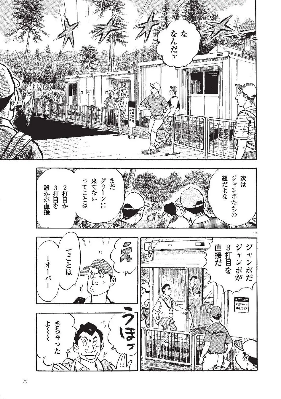【第80巻あらすじ】ツアー中盤戦に臨んだ鳴海一丸は、ジャンボと予選同組になり、ラウンド後にはジャンボから、アドレスから始動への極意を見盗る。舞台は福岡・芥屋ゴルフ倶楽部で行われるKBSオーガスタへ。そこでは突如、一丸の母親・鳴海玲が現れキャディに就くと宣言。一丸にとって、母親とのコンビは吉と出るか凶と出るか。一方、一丸を気にかける謎の少年・本阿弥尊も現れて…。注目の試合が今、始まる。