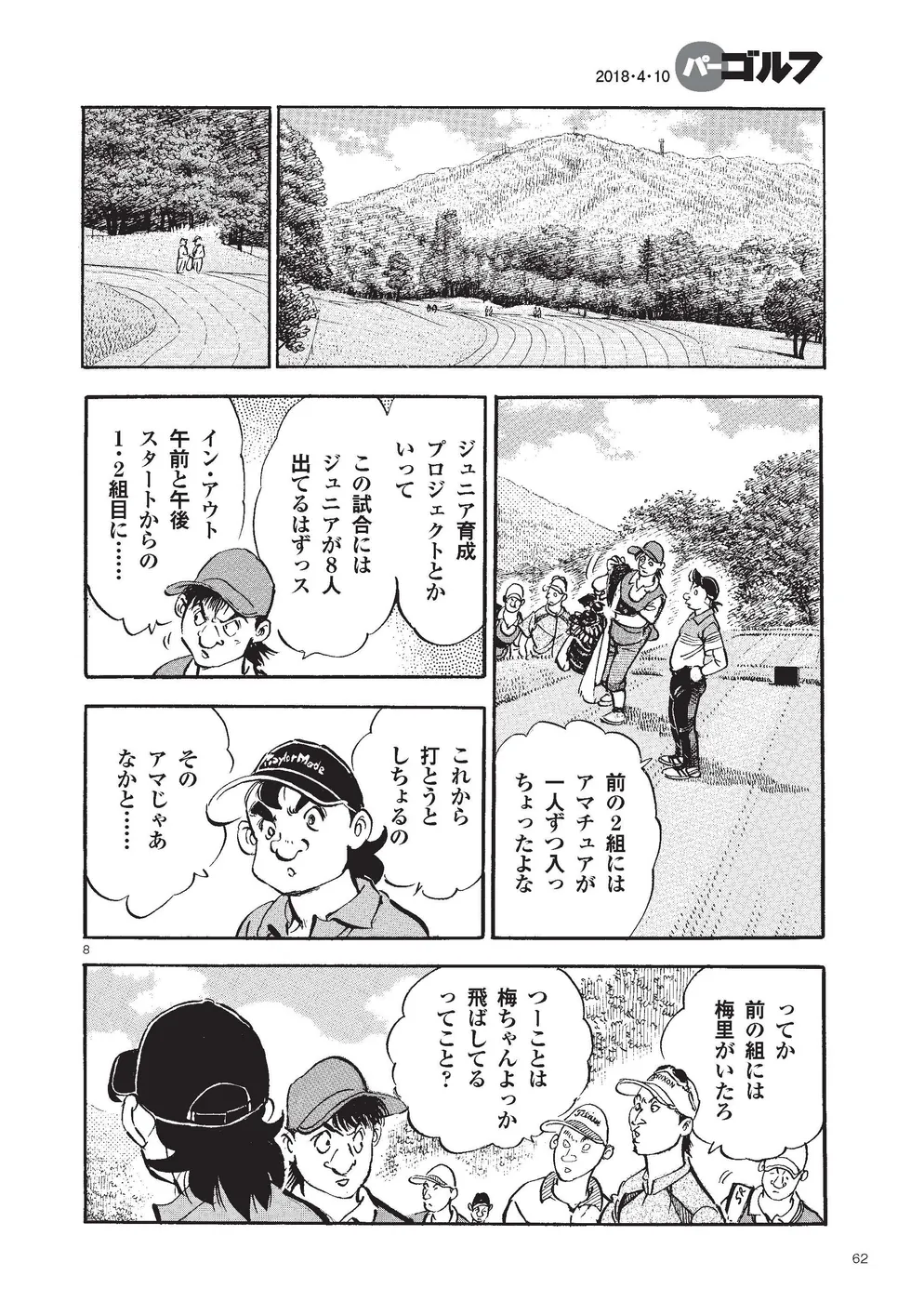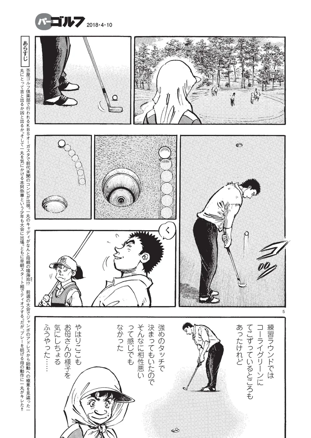【第81巻あらすじ】芥屋ゴルフ倶楽部で行われるKBSオーガスタでは、主人公・鳴海一丸のキャディを母親・鳴海玲が務めること。一時はギクシャクしたふたりだったが、いまひとつプレーに精彩を欠いていた一丸を、玲の策略で修正する。気づけば一丸を気にかける少年・本阿弥尊が初日5アンダー2位タイ。天才テニスプレーヤーの過去を持つ彼がなぜゴルフに!?無名のスーパージュニアプロに周囲は騒然!一方、出遅れた一丸にとって、攻めるしかない2日目が強風の中スタートした。
