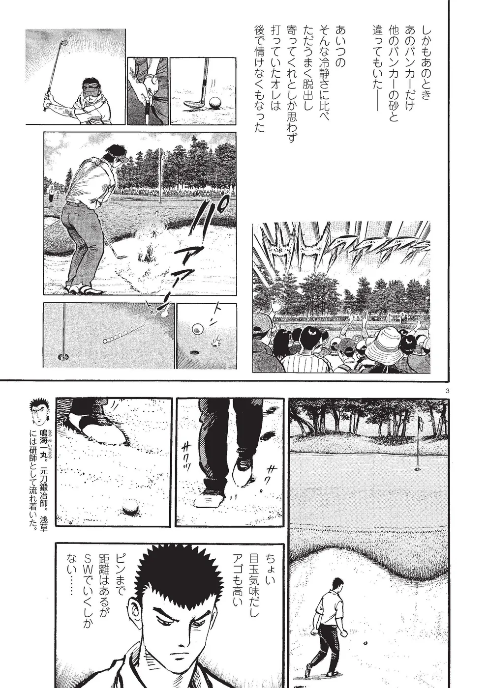 【第81巻あらすじ】芥屋ゴルフ倶楽部で行われるKBSオーガスタでは、主人公・鳴海一丸のキャディを母親・鳴海玲が務めること。一時はギクシャクしたふたりだったが、いまひとつプレーに精彩を欠いていた一丸を、玲の策略で修正する。気づけば一丸を気にかける少年・本阿弥尊が初日5アンダー2位タイ。天才テニスプレーヤーの過去を持つ彼がなぜゴルフに!?無名のスーパージュニアプロに周囲は騒然!一方、出遅れた一丸にとって、攻めるしかない2日目が強風の中スタートした。