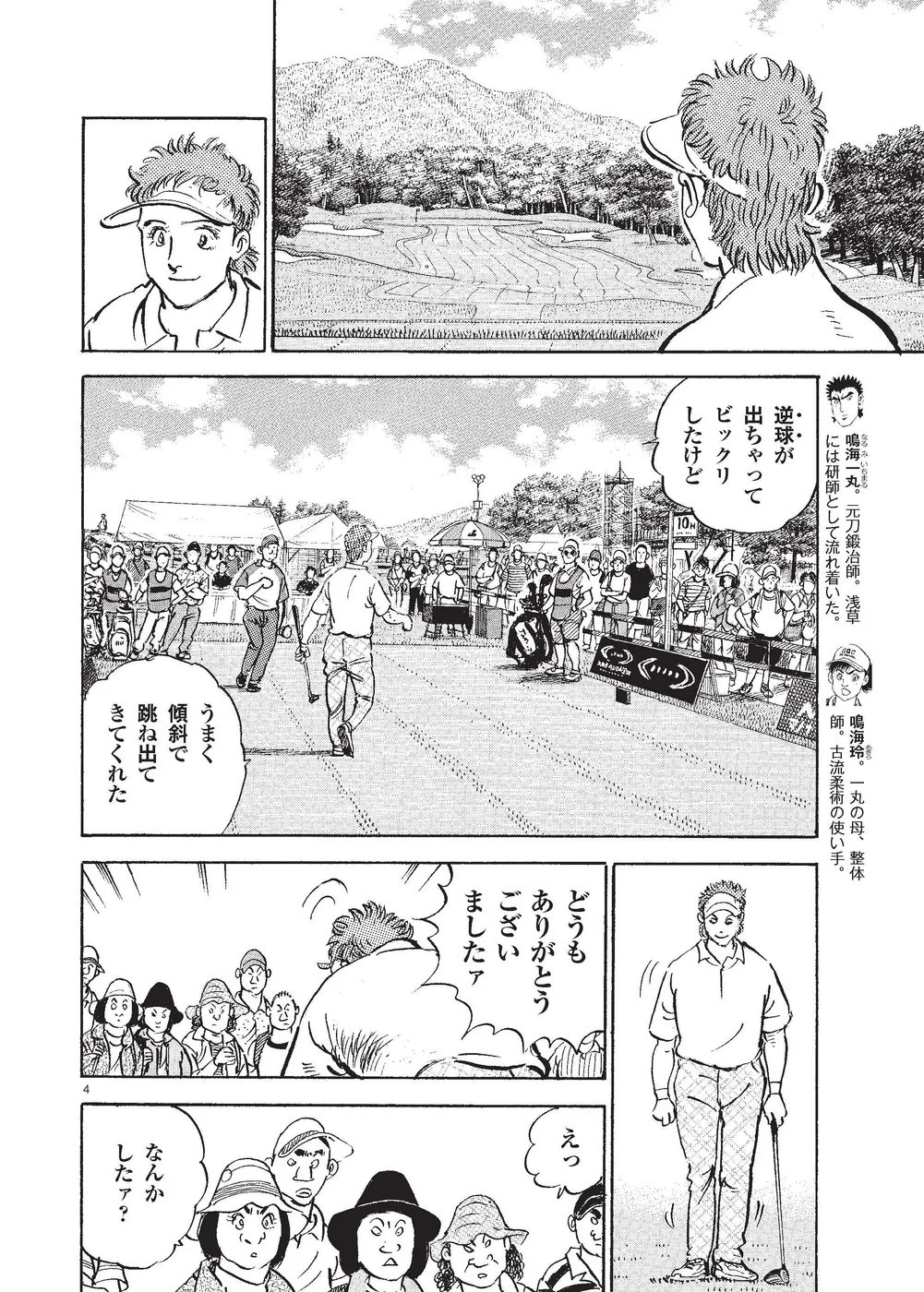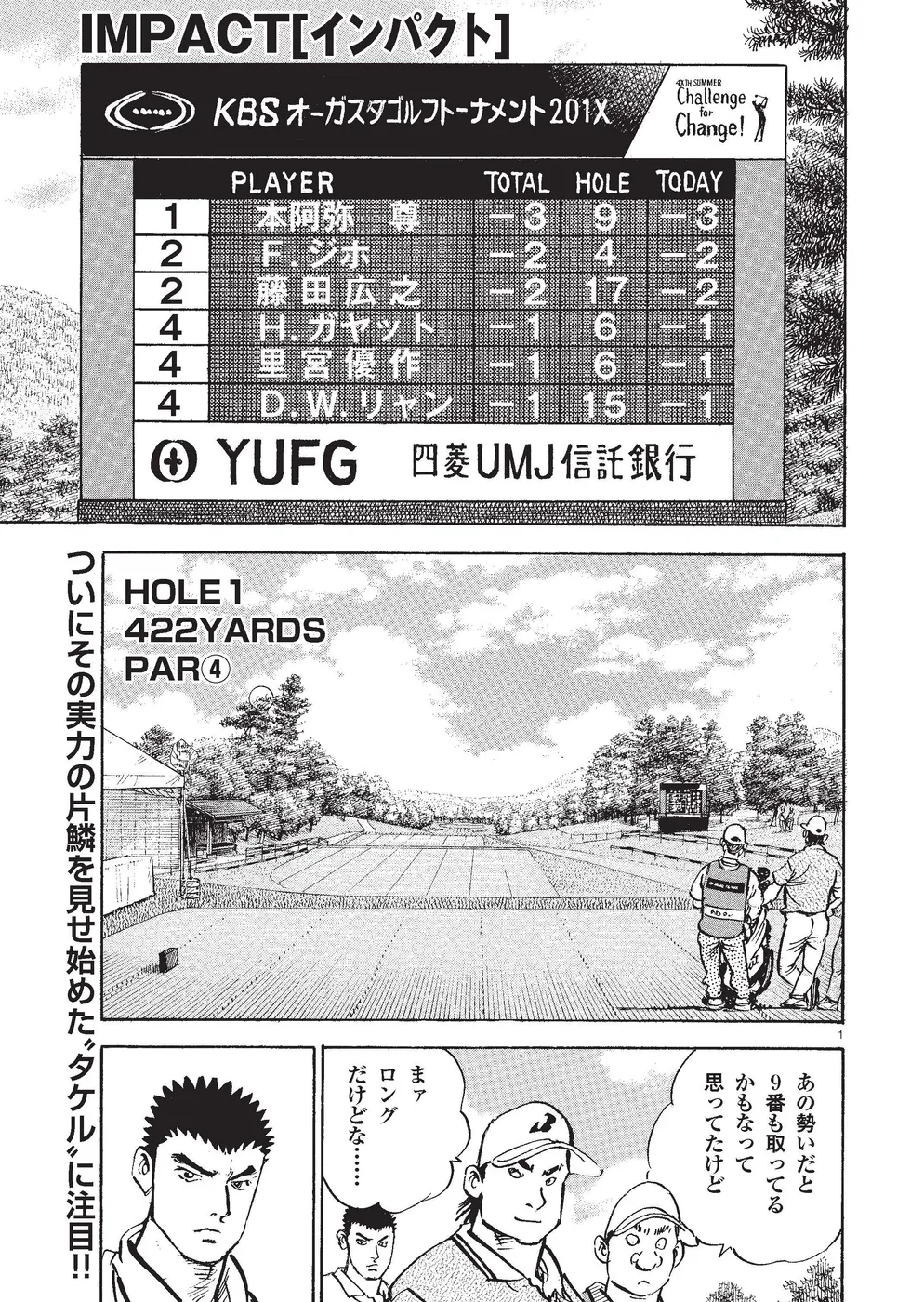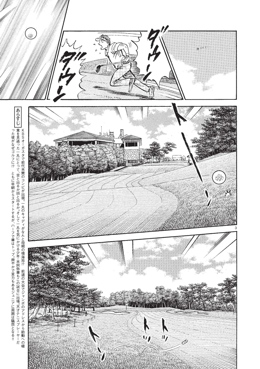 【第81巻あらすじ】芥屋ゴルフ倶楽部で行われるKBSオーガスタでは、主人公・鳴海一丸のキャディを母親・鳴海玲が務めること。一時はギクシャクしたふたりだったが、いまひとつプレーに精彩を欠いていた一丸を、玲の策略で修正する。気づけば一丸を気にかける少年・本阿弥尊が初日5アンダー2位タイ。天才テニスプレーヤーの過去を持つ彼がなぜゴルフに!?無名のスーパージュニアプロに周囲は騒然!一方、出遅れた一丸にとって、攻めるしかない2日目が強風の中スタートした。