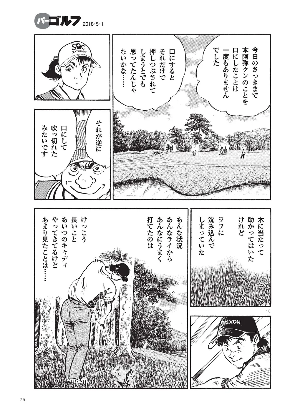 【第81巻あらすじ】芥屋ゴルフ倶楽部で行われるKBSオーガスタでは、主人公・鳴海一丸のキャディを母親・鳴海玲が務めること。一時はギクシャクしたふたりだったが、いまひとつプレーに精彩を欠いていた一丸を、玲の策略で修正する。気づけば一丸を気にかける少年・本阿弥尊が初日5アンダー2位タイ。天才テニスプレーヤーの過去を持つ彼がなぜゴルフに!?無名のスーパージュニアプロに周囲は騒然!一方、出遅れた一丸にとって、攻めるしかない2日目が強風の中スタートした。