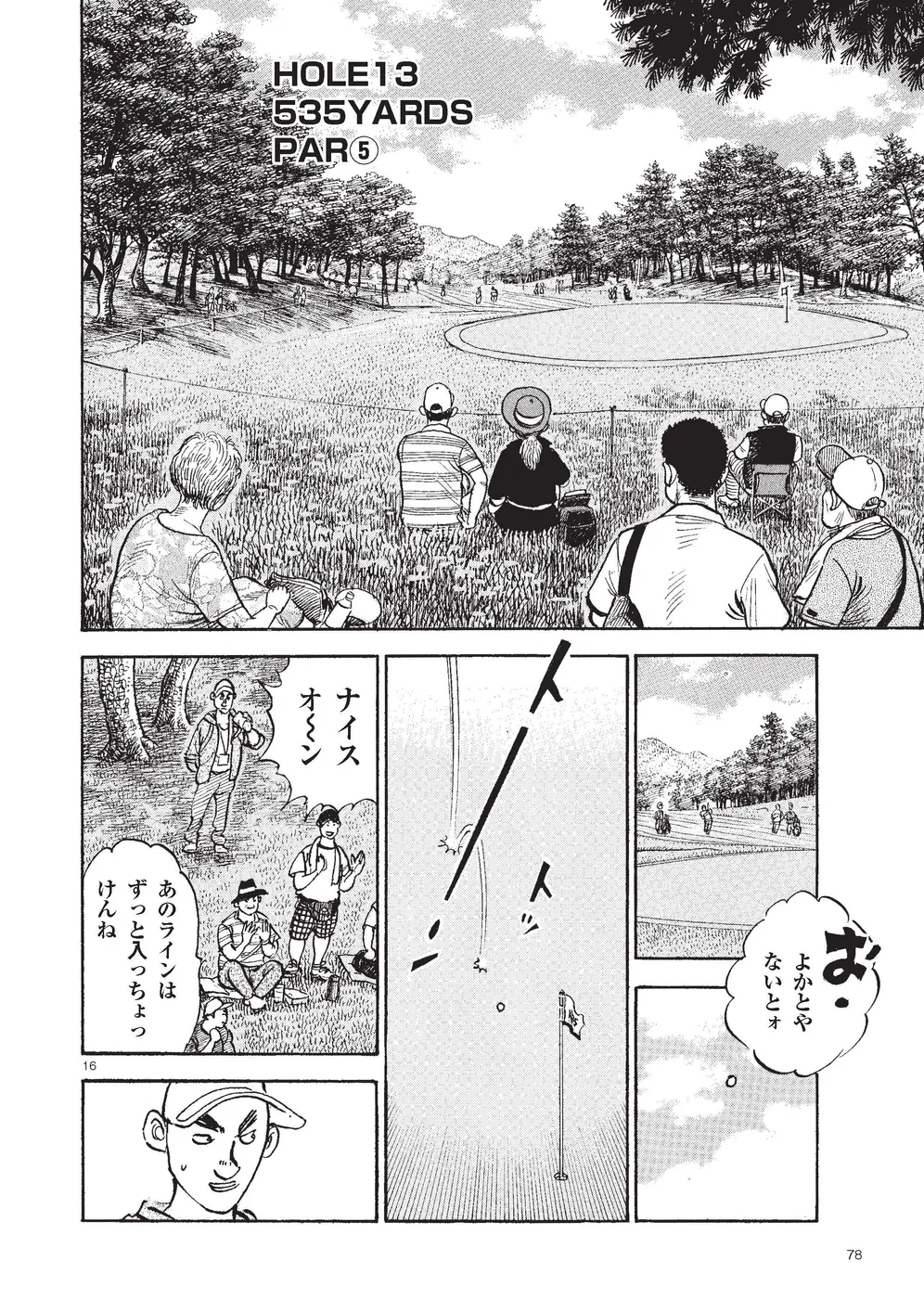 【第81巻あらすじ】芥屋ゴルフ倶楽部で行われるKBSオーガスタでは、主人公・鳴海一丸のキャディを母親・鳴海玲が務めること。一時はギクシャクしたふたりだったが、いまひとつプレーに精彩を欠いていた一丸を、玲の策略で修正する。気づけば一丸を気にかける少年・本阿弥尊が初日5アンダー2位タイ。天才テニスプレーヤーの過去を持つ彼がなぜゴルフに!?無名のスーパージュニアプロに周囲は騒然!一方、出遅れた一丸にとって、攻めるしかない2日目が強風の中スタートした。