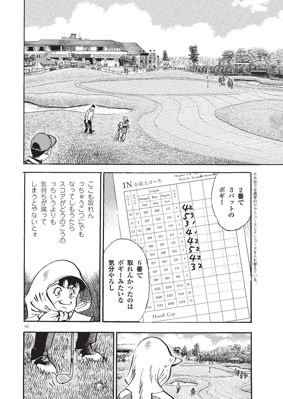 【第81巻あらすじ】芥屋ゴルフ倶楽部で行われるKBSオーガスタでは、主人公・鳴海一丸のキャディを母親・鳴海玲が務めること。一時はギクシャクしたふたりだったが、いまひとつプレーに精彩を欠いていた一丸を、玲の策略で修正する。気づけば一丸を気にかける少年・本阿弥尊が初日5アンダー2位タイ。天才テニスプレーヤーの過去を持つ彼がなぜゴルフに!?無名のスーパージュニアプロに周囲は騒然!一方、出遅れた一丸にとって、攻めるしかない2日目が強風の中スタートした。
