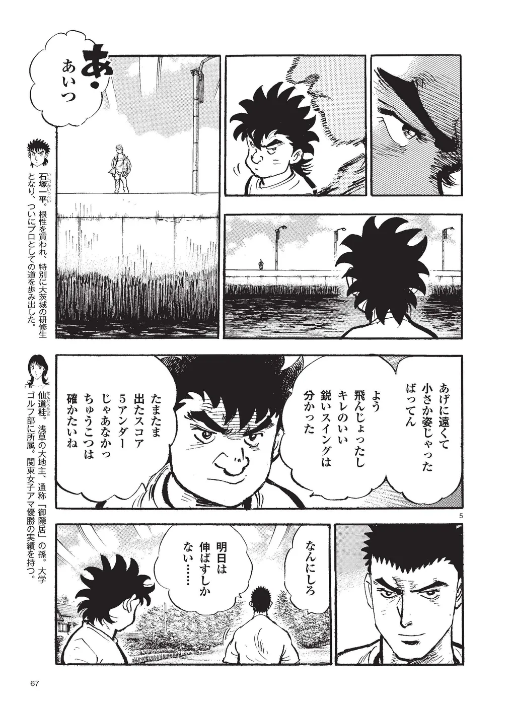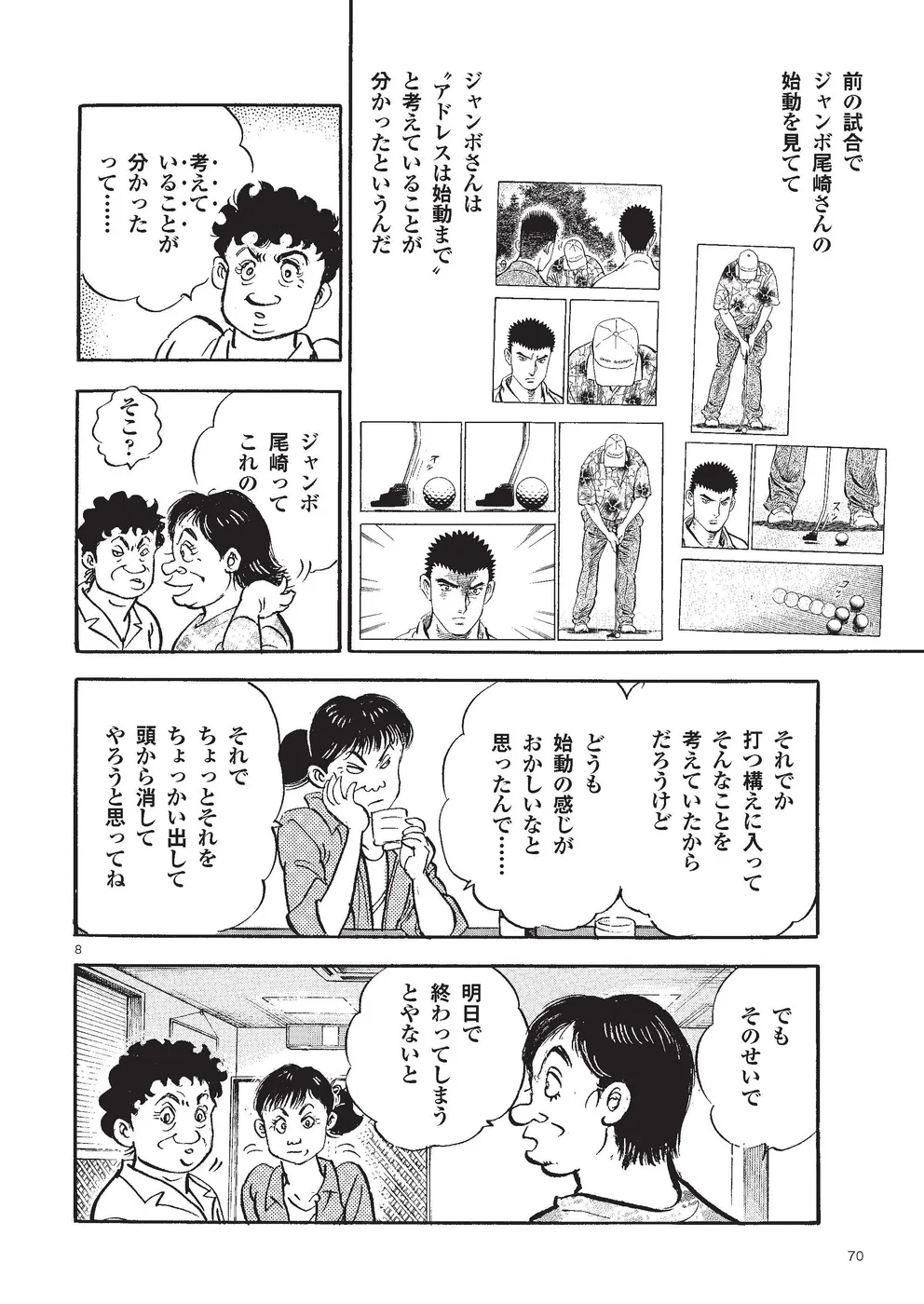【第81巻あらすじ】芥屋ゴルフ倶楽部で行われるKBSオーガスタでは、主人公・鳴海一丸のキャディを母親・鳴海玲が務めること。一時はギクシャクしたふたりだったが、いまひとつプレーに精彩を欠いていた一丸を、玲の策略で修正する。気づけば一丸を気にかける少年・本阿弥尊が初日5アンダー2位タイ。天才テニスプレーヤーの過去を持つ彼がなぜゴルフに!?無名のスーパージュニアプロに周囲は騒然!一方、出遅れた一丸にとって、攻めるしかない2日目が強風の中スタートした。