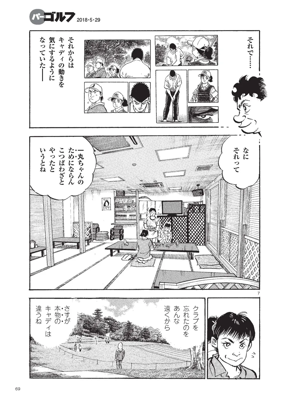 【第81巻あらすじ】芥屋ゴルフ倶楽部で行われるKBSオーガスタでは、主人公・鳴海一丸のキャディを母親・鳴海玲が務めること。一時はギクシャクしたふたりだったが、いまひとつプレーに精彩を欠いていた一丸を、玲の策略で修正する。気づけば一丸を気にかける少年・本阿弥尊が初日5アンダー2位タイ。天才テニスプレーヤーの過去を持つ彼がなぜゴルフに!?無名のスーパージュニアプロに周囲は騒然!一方、出遅れた一丸にとって、攻めるしかない2日目が強風の中スタートした。
