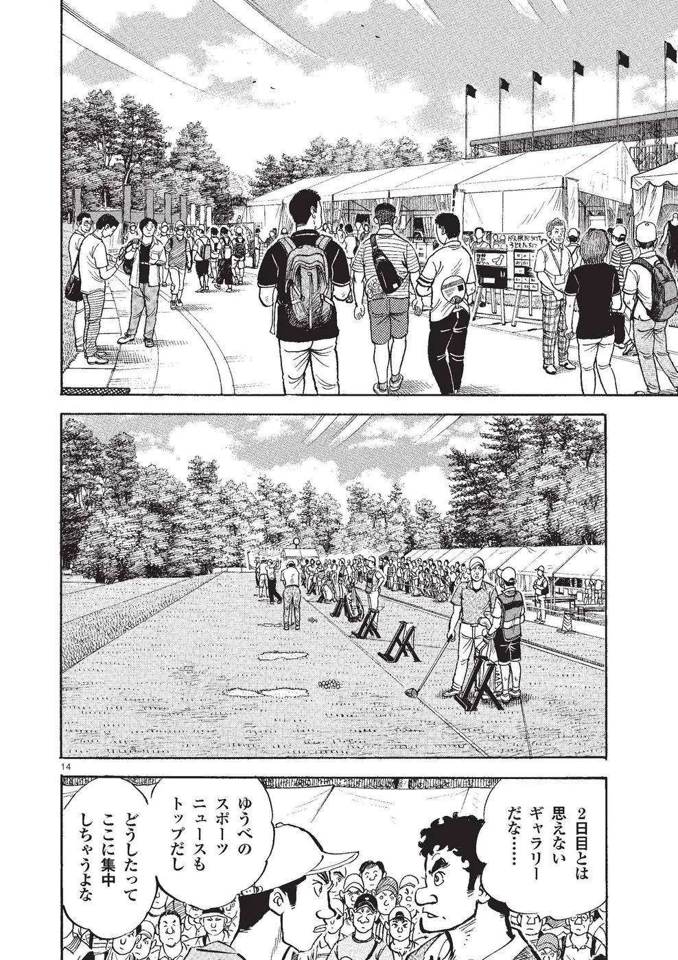 【第81巻あらすじ】芥屋ゴルフ倶楽部で行われるKBSオーガスタでは、主人公・鳴海一丸のキャディを母親・鳴海玲が務めること。一時はギクシャクしたふたりだったが、いまひとつプレーに精彩を欠いていた一丸を、玲の策略で修正する。気づけば一丸を気にかける少年・本阿弥尊が初日5アンダー2位タイ。天才テニスプレーヤーの過去を持つ彼がなぜゴルフに!?無名のスーパージュニアプロに周囲は騒然!一方、出遅れた一丸にとって、攻めるしかない2日目が強風の中スタートした。