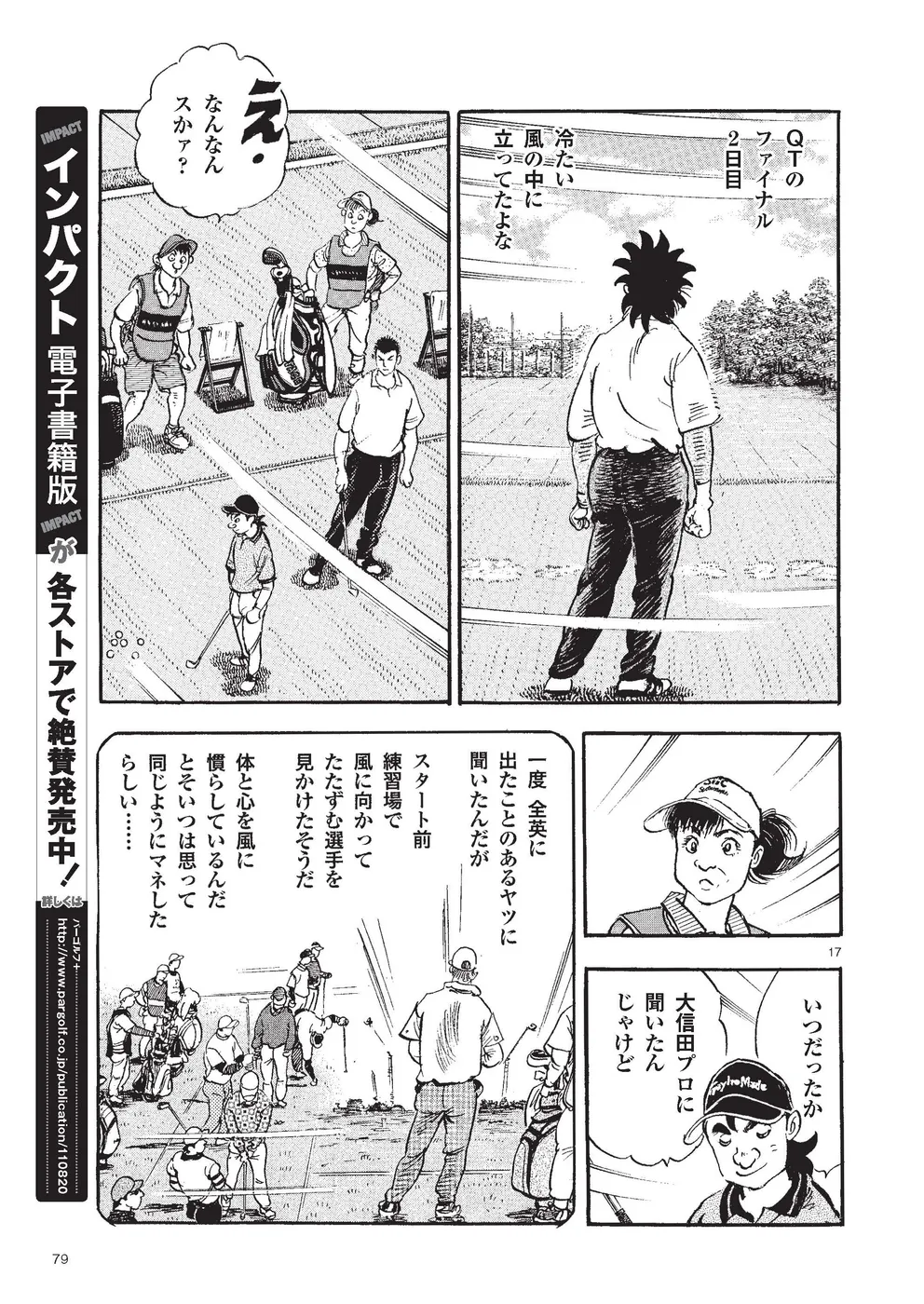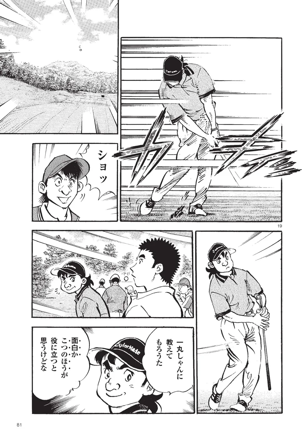 【第81巻あらすじ】芥屋ゴルフ倶楽部で行われるKBSオーガスタでは、主人公・鳴海一丸のキャディを母親・鳴海玲が務めること。一時はギクシャクしたふたりだったが、いまひとつプレーに精彩を欠いていた一丸を、玲の策略で修正する。気づけば一丸を気にかける少年・本阿弥尊が初日5アンダー2位タイ。天才テニスプレーヤーの過去を持つ彼がなぜゴルフに!?無名のスーパージュニアプロに周囲は騒然!一方、出遅れた一丸にとって、攻めるしかない2日目が強風の中スタートした。