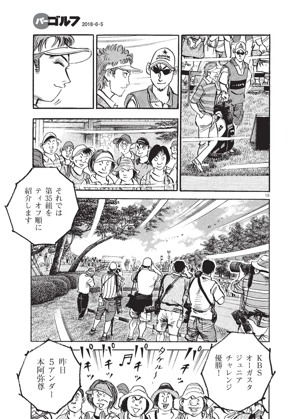 【第81巻あらすじ】芥屋ゴルフ倶楽部で行われるKBSオーガスタでは、主人公・鳴海一丸のキャディを母親・鳴海玲が務めること。一時はギクシャクしたふたりだったが、いまひとつプレーに精彩を欠いていた一丸を、玲の策略で修正する。気づけば一丸を気にかける少年・本阿弥尊が初日5アンダー2位タイ。天才テニスプレーヤーの過去を持つ彼がなぜゴルフに!?無名のスーパージュニアプロに周囲は騒然!一方、出遅れた一丸にとって、攻めるしかない2日目が強風の中スタートした。
