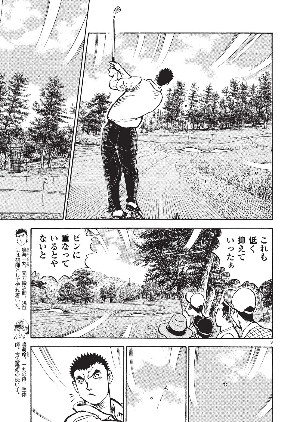 【第81巻あらすじ】芥屋ゴルフ倶楽部で行われるKBSオーガスタでは、主人公・鳴海一丸のキャディを母親・鳴海玲が務めること。一時はギクシャクしたふたりだったが、いまひとつプレーに精彩を欠いていた一丸を、玲の策略で修正する。気づけば一丸を気にかける少年・本阿弥尊が初日5アンダー2位タイ。天才テニスプレーヤーの過去を持つ彼がなぜゴルフに!?無名のスーパージュニアプロに周囲は騒然!一方、出遅れた一丸にとって、攻めるしかない2日目が強風の中スタートした。