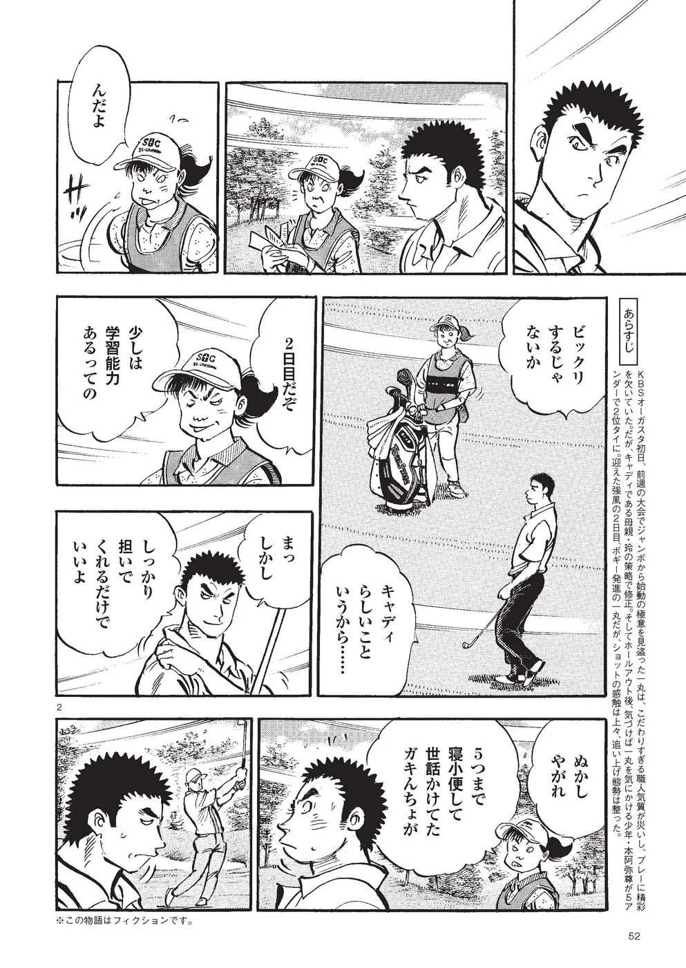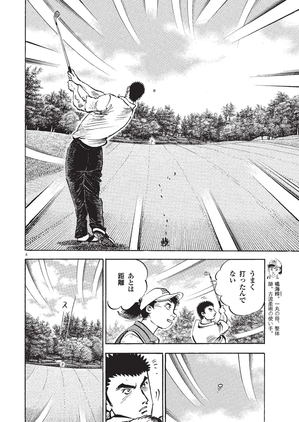 【第82巻あらすじ】KBSオーガスタ2日目、ボギー発進の主人公・一丸だが、キャディを務める母・玲との連係もうまく絡み合い、強風のなか3つスコアを伸ばし辛うじて予選通過する。ラウンド後の練習では、本試合、大注目の元天才テニスプレーヤー・本阿弥尊が接近。一丸の後ろの打席へ強引に割り込み、伝説の「同時打ち」を敢行する。それは4打差で上位をキープする尊にとって、一丸と同組でプレーできないもどかしさを解消するためのものだった。さらに3日目、尊がアマチュア最年少での優勝を宣言したことから、一丸の闘争心に火が付く。攻めのゴルフを展開する一丸にチャンスは巡ってくるのか!?