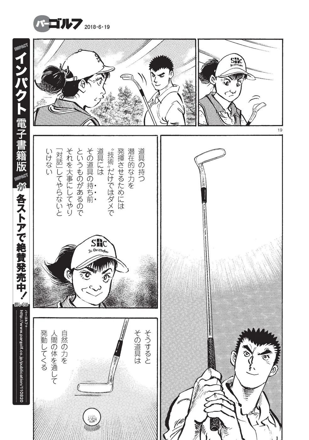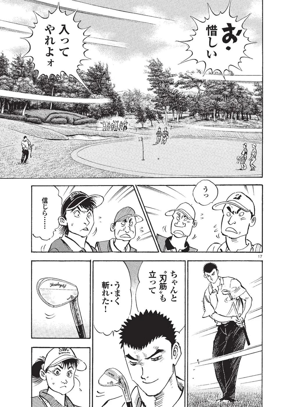 【第82巻あらすじ】KBSオーガスタ2日目、ボギー発進の主人公・一丸だが、キャディを務める母・玲との連係もうまく絡み合い、強風のなか3つスコアを伸ばし辛うじて予選通過する。ラウンド後の練習では、本試合、大注目の元天才テニスプレーヤー・本阿弥尊が接近。一丸の後ろの打席へ強引に割り込み、伝説の「同時打ち」を敢行する。それは4打差で上位をキープする尊にとって、一丸と同組でプレーできないもどかしさを解消するためのものだった。さらに3日目、尊がアマチュア最年少での優勝を宣言したことから、一丸の闘争心に火が付く。攻めのゴルフを展開する一丸にチャンスは巡ってくるのか!?