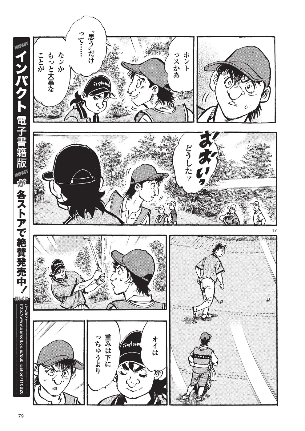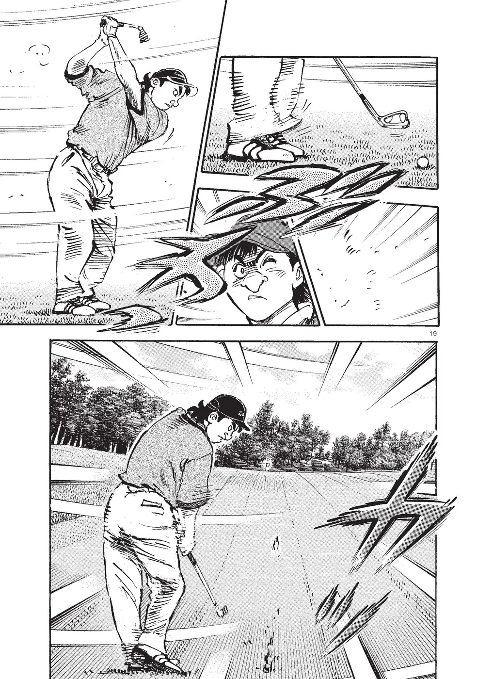 【第82巻あらすじ】KBSオーガスタ2日目、ボギー発進の主人公・一丸だが、キャディを務める母・玲との連係もうまく絡み合い、強風のなか3つスコアを伸ばし辛うじて予選通過する。ラウンド後の練習では、本試合、大注目の元天才テニスプレーヤー・本阿弥尊が接近。一丸の後ろの打席へ強引に割り込み、伝説の「同時打ち」を敢行する。それは4打差で上位をキープする尊にとって、一丸と同組でプレーできないもどかしさを解消するためのものだった。さらに3日目、尊がアマチュア最年少での優勝を宣言したことから、一丸の闘争心に火が付く。攻めのゴルフを展開する一丸にチャンスは巡ってくるのか!?
