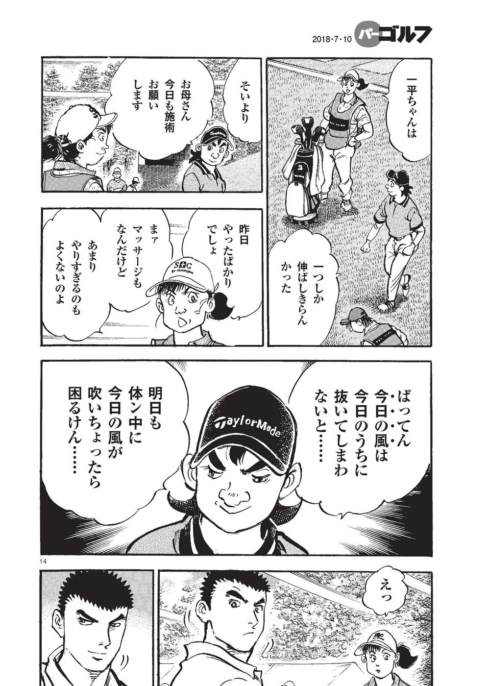 【第82巻あらすじ】KBSオーガスタ2日目、ボギー発進の主人公・一丸だが、キャディを務める母・玲との連係もうまく絡み合い、強風のなか3つスコアを伸ばし辛うじて予選通過する。ラウンド後の練習では、本試合、大注目の元天才テニスプレーヤー・本阿弥尊が接近。一丸の後ろの打席へ強引に割り込み、伝説の「同時打ち」を敢行する。それは4打差で上位をキープする尊にとって、一丸と同組でプレーできないもどかしさを解消するためのものだった。さらに3日目、尊がアマチュア最年少での優勝を宣言したことから、一丸の闘争心に火が付く。攻めのゴルフを展開する一丸にチャンスは巡ってくるのか!?
