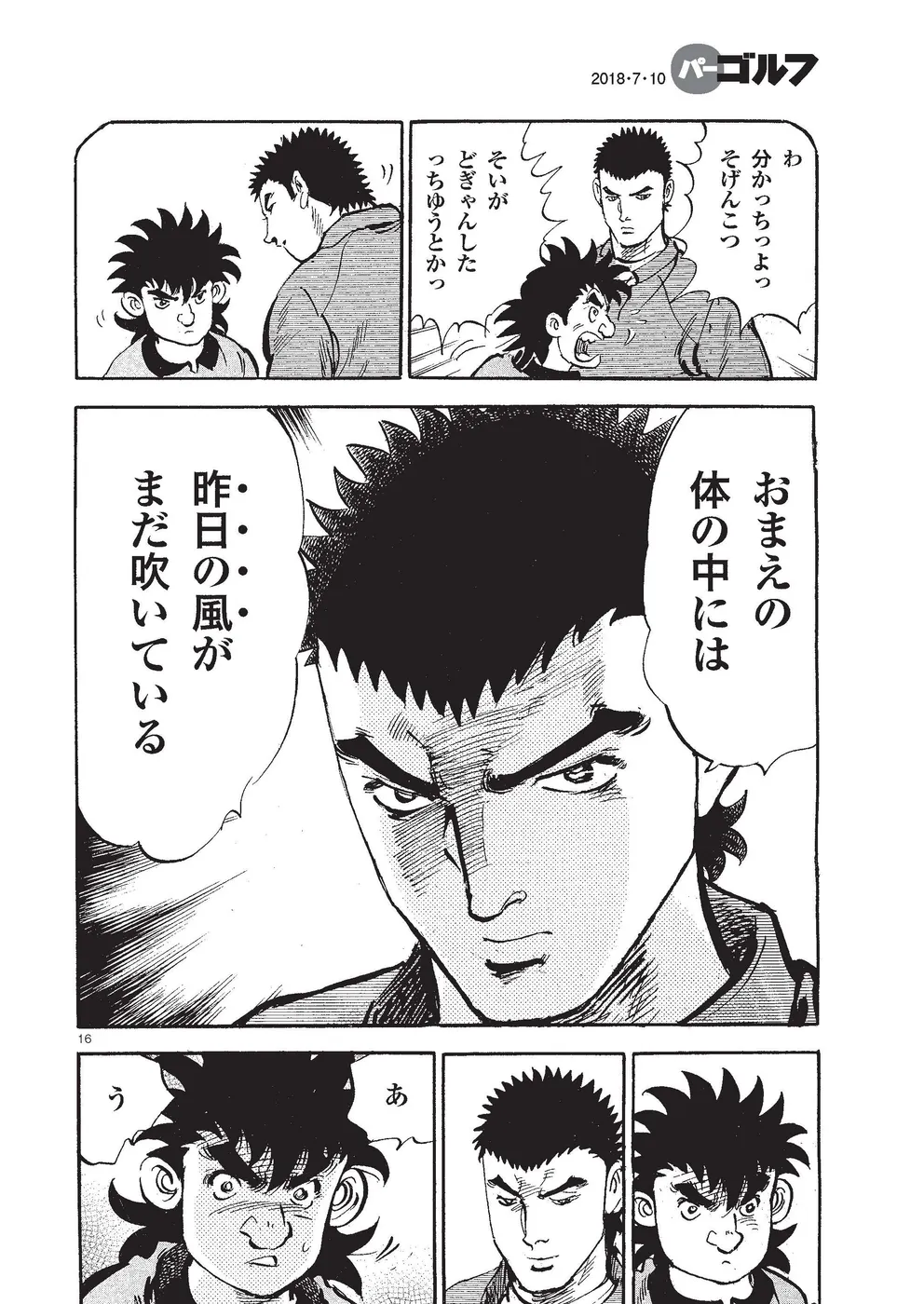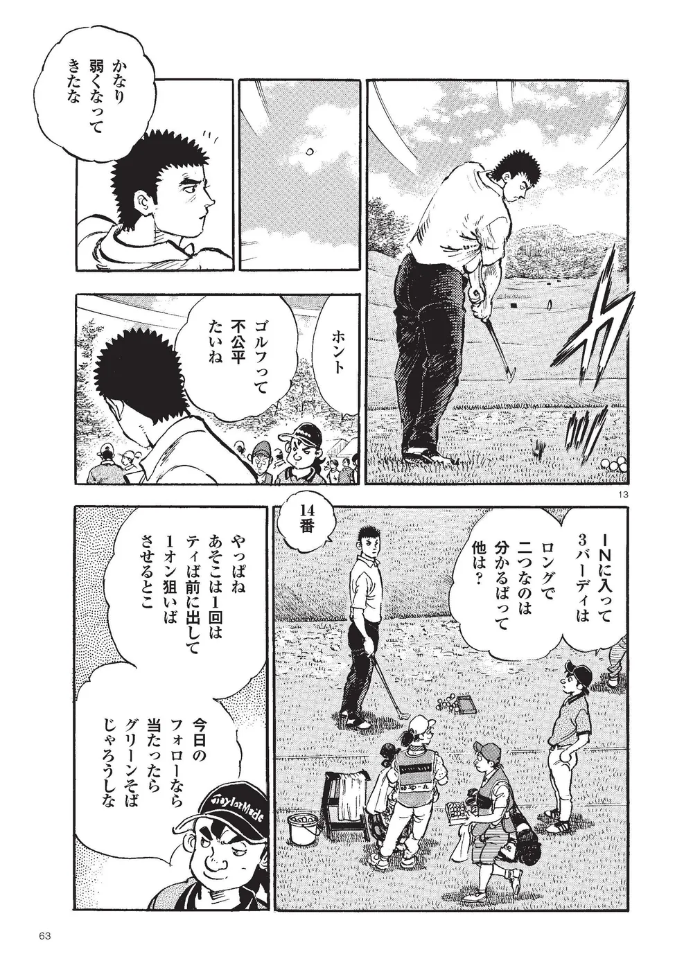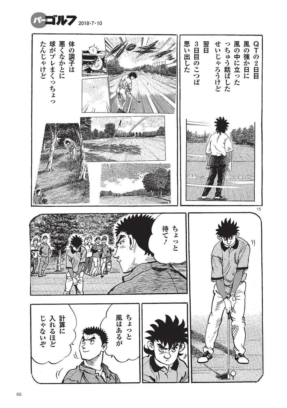 【第82巻あらすじ】KBSオーガスタ2日目、ボギー発進の主人公・一丸だが、キャディを務める母・玲との連係もうまく絡み合い、強風のなか3つスコアを伸ばし辛うじて予選通過する。ラウンド後の練習では、本試合、大注目の元天才テニスプレーヤー・本阿弥尊が接近。一丸の後ろの打席へ強引に割り込み、伝説の「同時打ち」を敢行する。それは4打差で上位をキープする尊にとって、一丸と同組でプレーできないもどかしさを解消するためのものだった。さらに3日目、尊がアマチュア最年少での優勝を宣言したことから、一丸の闘争心に火が付く。攻めのゴルフを展開する一丸にチャンスは巡ってくるのか!?