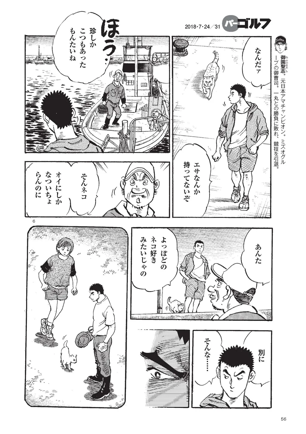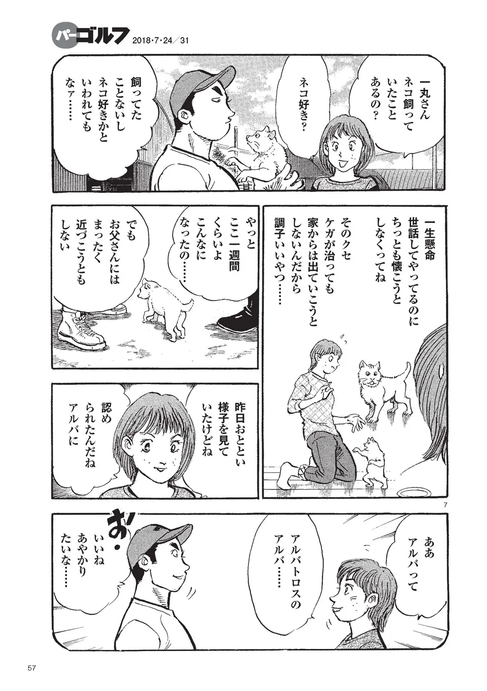 【第82巻あらすじ】KBSオーガスタ2日目、ボギー発進の主人公・一丸だが、キャディを務める母・玲との連係もうまく絡み合い、強風のなか3つスコアを伸ばし辛うじて予選通過する。ラウンド後の練習では、本試合、大注目の元天才テニスプレーヤー・本阿弥尊が接近。一丸の後ろの打席へ強引に割り込み、伝説の「同時打ち」を敢行する。それは4打差で上位をキープする尊にとって、一丸と同組でプレーできないもどかしさを解消するためのものだった。さらに3日目、尊がアマチュア最年少での優勝を宣言したことから、一丸の闘争心に火が付く。攻めのゴルフを展開する一丸にチャンスは巡ってくるのか!?