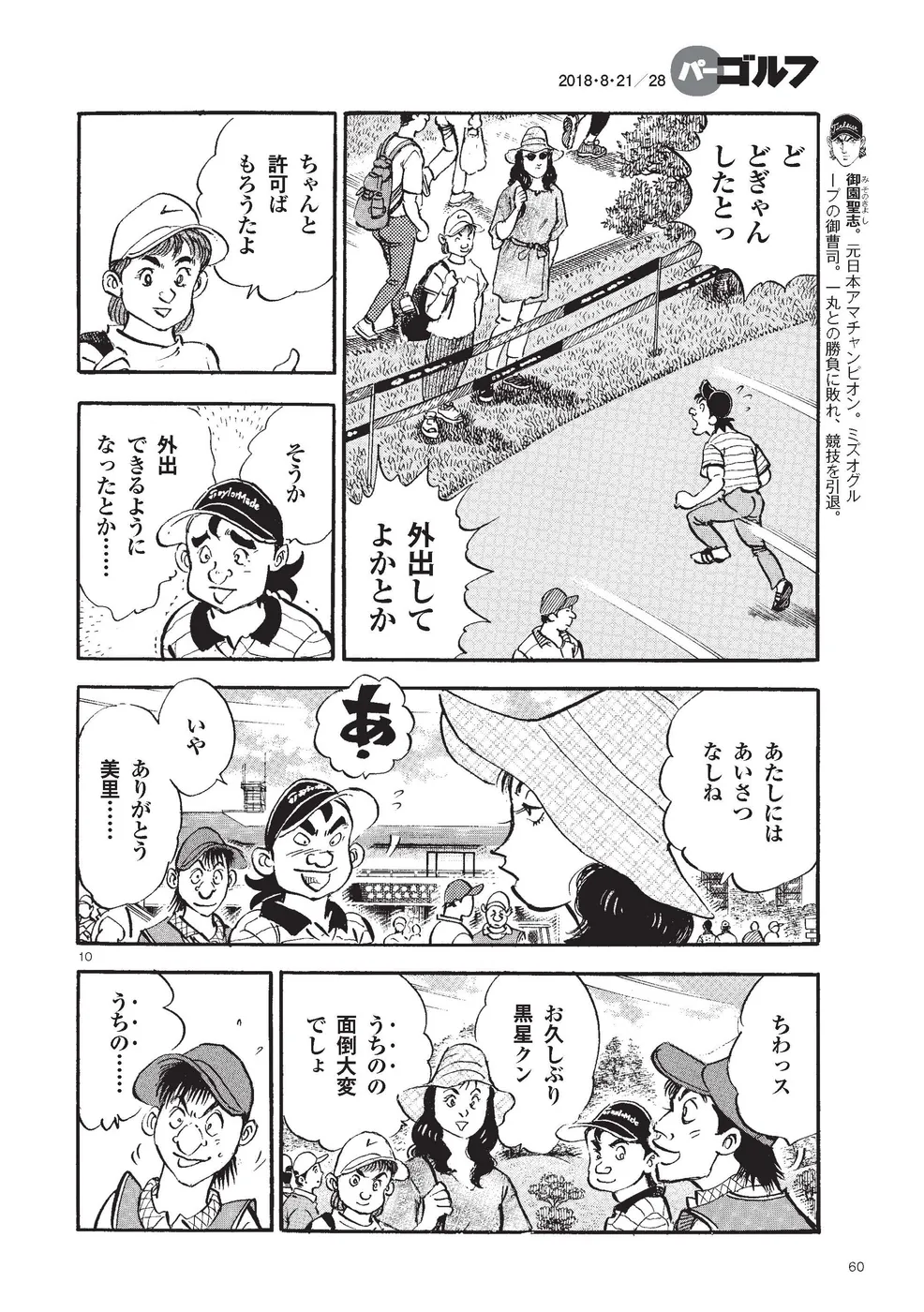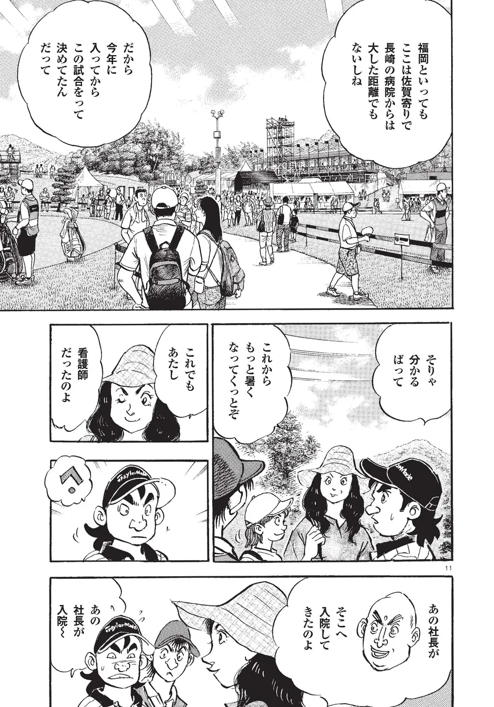 【第82巻あらすじ】KBSオーガスタ2日目、ボギー発進の主人公・一丸だが、キャディを務める母・玲との連係もうまく絡み合い、強風のなか3つスコアを伸ばし辛うじて予選通過する。ラウンド後の練習では、本試合、大注目の元天才テニスプレーヤー・本阿弥尊が接近。一丸の後ろの打席へ強引に割り込み、伝説の「同時打ち」を敢行する。それは4打差で上位をキープする尊にとって、一丸と同組でプレーできないもどかしさを解消するためのものだった。さらに3日目、尊がアマチュア最年少での優勝を宣言したことから、一丸の闘争心に火が付く。攻めのゴルフを展開する一丸にチャンスは巡ってくるのか!?