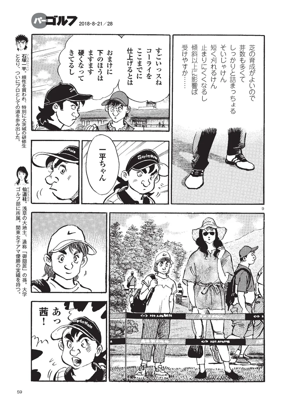 【第82巻あらすじ】KBSオーガスタ2日目、ボギー発進の主人公・一丸だが、キャディを務める母・玲との連係もうまく絡み合い、強風のなか3つスコアを伸ばし辛うじて予選通過する。ラウンド後の練習では、本試合、大注目の元天才テニスプレーヤー・本阿弥尊が接近。一丸の後ろの打席へ強引に割り込み、伝説の「同時打ち」を敢行する。それは4打差で上位をキープする尊にとって、一丸と同組でプレーできないもどかしさを解消するためのものだった。さらに3日目、尊がアマチュア最年少での優勝を宣言したことから、一丸の闘争心に火が付く。攻めのゴルフを展開する一丸にチャンスは巡ってくるのか!?