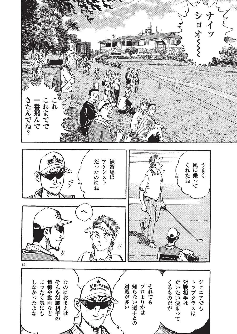 【第82巻あらすじ】KBSオーガスタ2日目、ボギー発進の主人公・一丸だが、キャディを務める母・玲との連係もうまく絡み合い、強風のなか3つスコアを伸ばし辛うじて予選通過する。ラウンド後の練習では、本試合、大注目の元天才テニスプレーヤー・本阿弥尊が接近。一丸の後ろの打席へ強引に割り込み、伝説の「同時打ち」を敢行する。それは4打差で上位をキープする尊にとって、一丸と同組でプレーできないもどかしさを解消するためのものだった。さらに3日目、尊がアマチュア最年少での優勝を宣言したことから、一丸の闘争心に火が付く。攻めのゴルフを展開する一丸にチャンスは巡ってくるのか!?