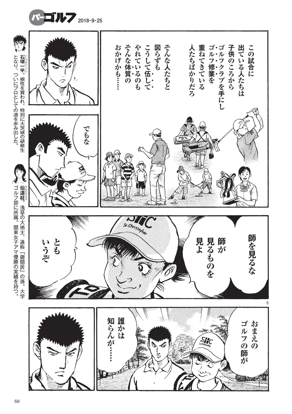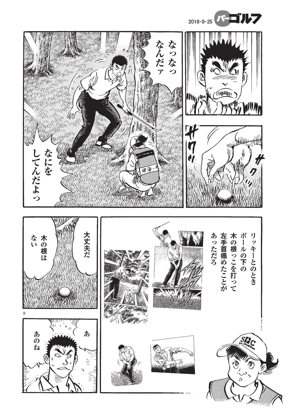 【第83巻あらすじ】KBSオーガスタ3日目、辛うじて予選通過した一丸は、アマ最年少での優勝宣言をした本阿弥尊に闘争心をかき立てられ、4打差を縮めるべくスタートから攻めのゴルフを展開。パットは不調ながら、手作りSWのショットの感触は上々で、INスタートの17番でバーディー奪取。順調にスコアを伸ばし迎えた最終ホール、同組の飛ばし屋のスイングを見盗って渾身のビッグドライブ。順位を8位に上げ、最終日は尊と同組になった。しかし、思わぬ人物が現れたことで一丸のショットに変化が―。