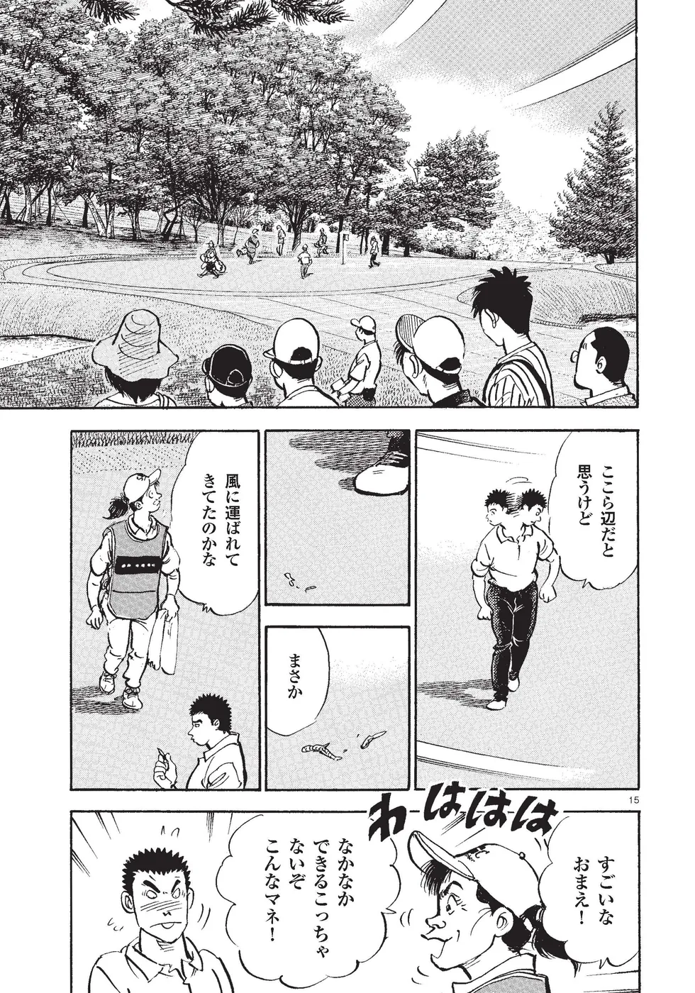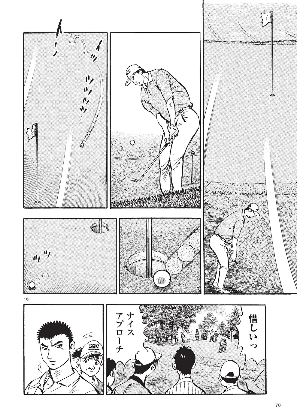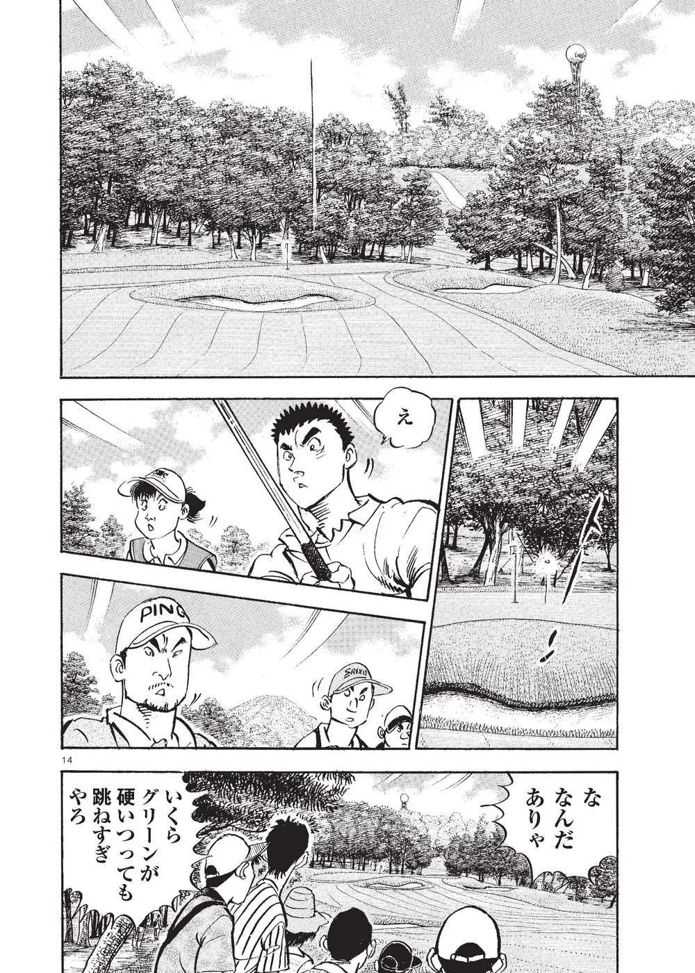 【第83巻あらすじ】KBSオーガスタ3日目、辛うじて予選通過した一丸は、アマ最年少での優勝宣言をした本阿弥尊に闘争心をかき立てられ、4打差を縮めるべくスタートから攻めのゴルフを展開。パットは不調ながら、手作りSWのショットの感触は上々で、INスタートの17番でバーディー奪取。順調にスコアを伸ばし迎えた最終ホール、同組の飛ばし屋のスイングを見盗って渾身のビッグドライブ。順位を8位に上げ、最終日は尊と同組になった。しかし、思わぬ人物が現れたことで一丸のショットに変化が―。
