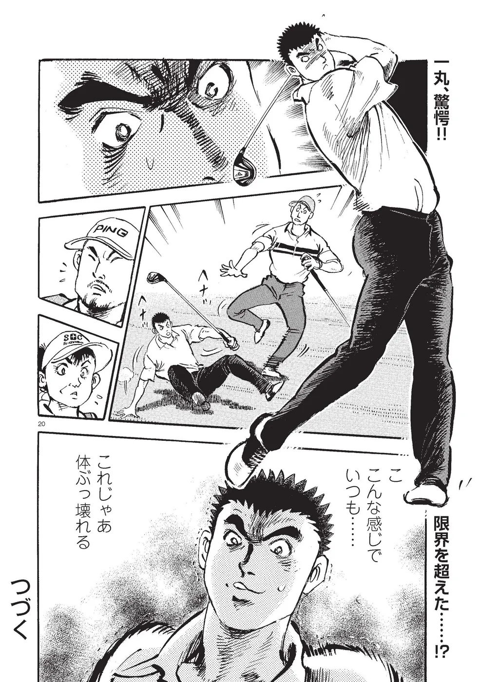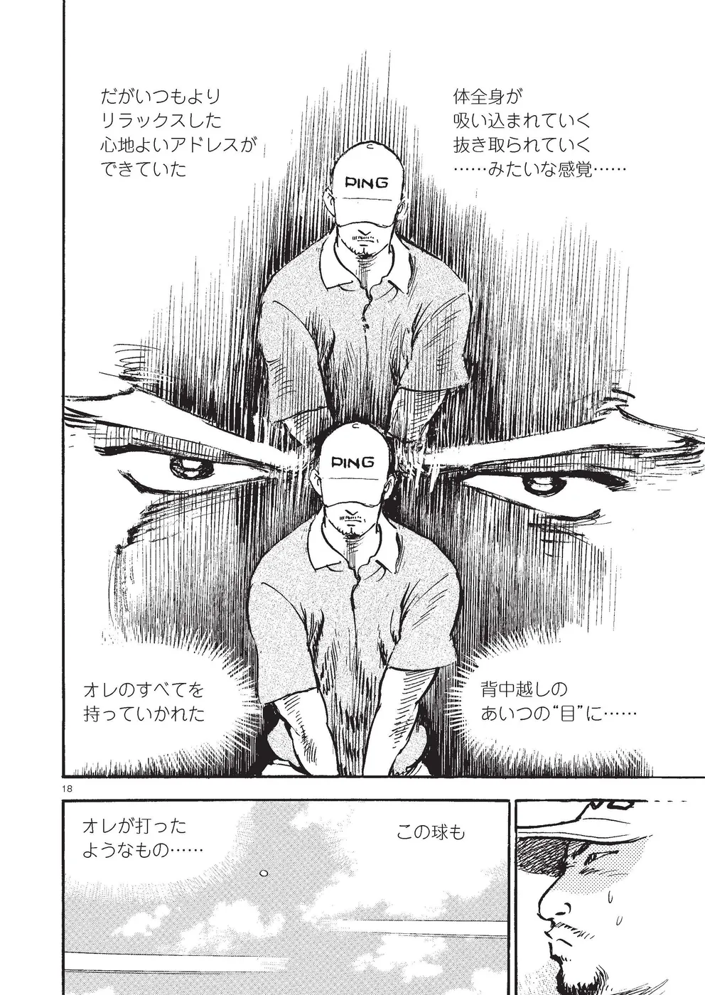 【第83巻あらすじ】KBSオーガスタ3日目、辛うじて予選通過した一丸は、アマ最年少での優勝宣言をした本阿弥尊に闘争心をかき立てられ、4打差を縮めるべくスタートから攻めのゴルフを展開。パットは不調ながら、手作りSWのショットの感触は上々で、INスタートの17番でバーディー奪取。順調にスコアを伸ばし迎えた最終ホール、同組の飛ばし屋のスイングを見盗って渾身のビッグドライブ。順位を8位に上げ、最終日は尊と同組になった。しかし、思わぬ人物が現れたことで一丸のショットに変化が―。
