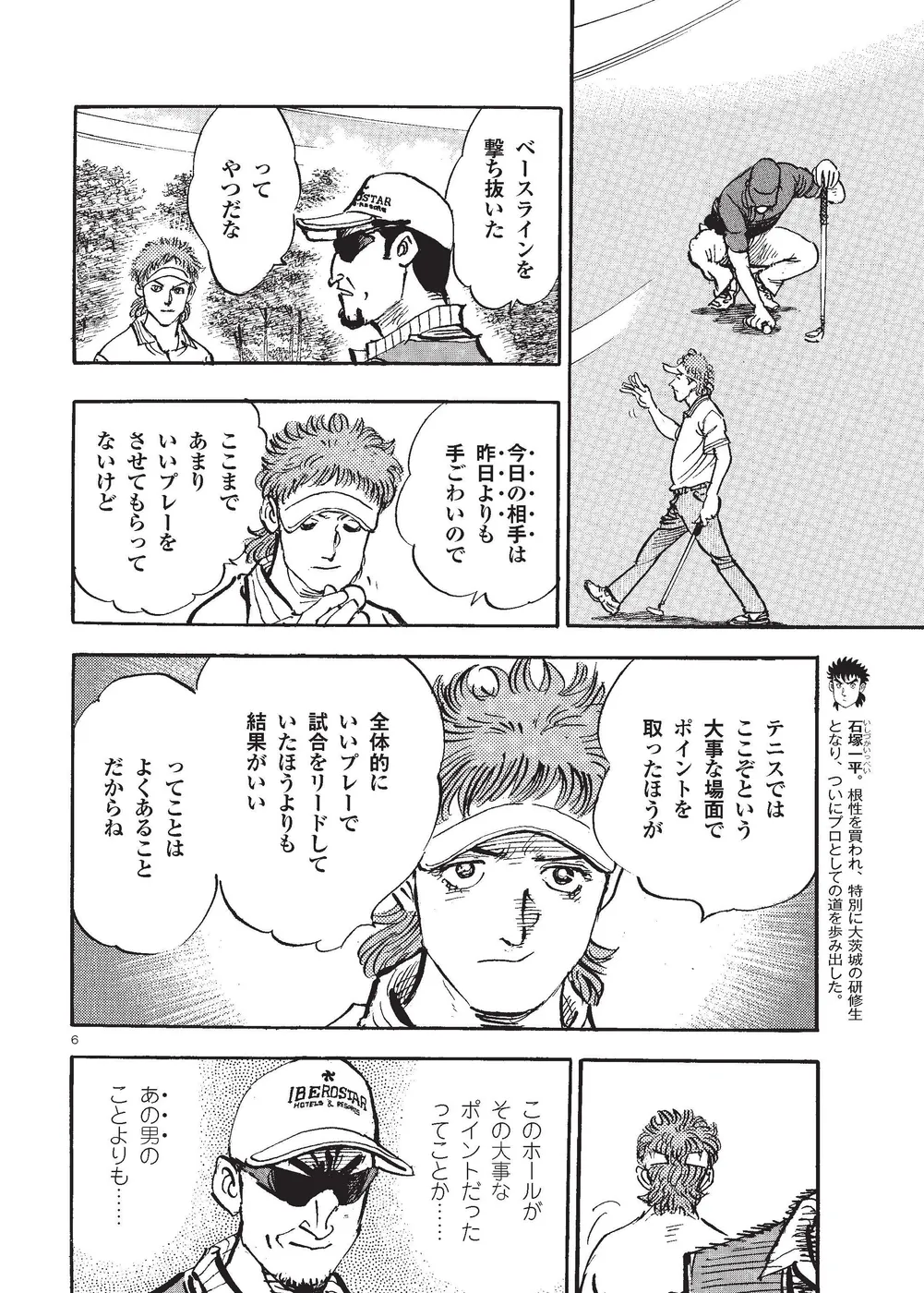 【第83巻あらすじ】KBSオーガスタ3日目、辛うじて予選通過した一丸は、アマ最年少での優勝宣言をした本阿弥尊に闘争心をかき立てられ、4打差を縮めるべくスタートから攻めのゴルフを展開。パットは不調ながら、手作りSWのショットの感触は上々で、INスタートの17番でバーディー奪取。順調にスコアを伸ばし迎えた最終ホール、同組の飛ばし屋のスイングを見盗って渾身のビッグドライブ。順位を8位に上げ、最終日は尊と同組になった。しかし、思わぬ人物が現れたことで一丸のショットに変化が―。