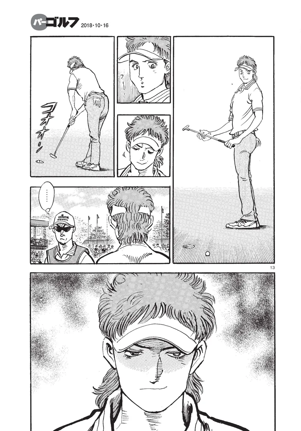 【第83巻あらすじ】KBSオーガスタ3日目、辛うじて予選通過した一丸は、アマ最年少での優勝宣言をした本阿弥尊に闘争心をかき立てられ、4打差を縮めるべくスタートから攻めのゴルフを展開。パットは不調ながら、手作りSWのショットの感触は上々で、INスタートの17番でバーディー奪取。順調にスコアを伸ばし迎えた最終ホール、同組の飛ばし屋のスイングを見盗って渾身のビッグドライブ。順位を8位に上げ、最終日は尊と同組になった。しかし、思わぬ人物が現れたことで一丸のショットに変化が―。
