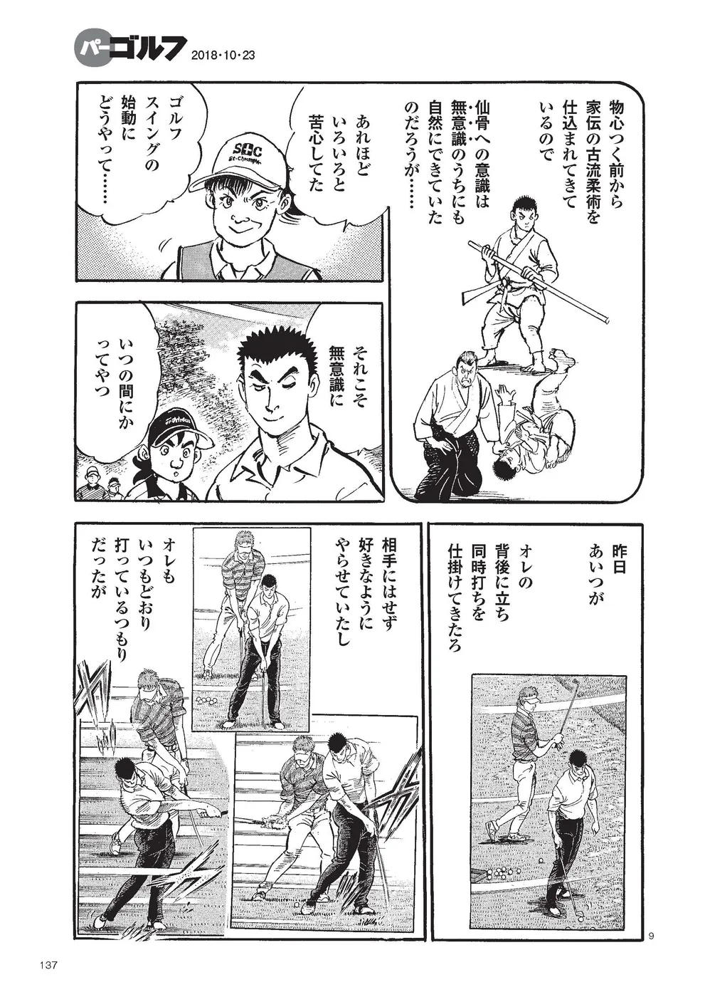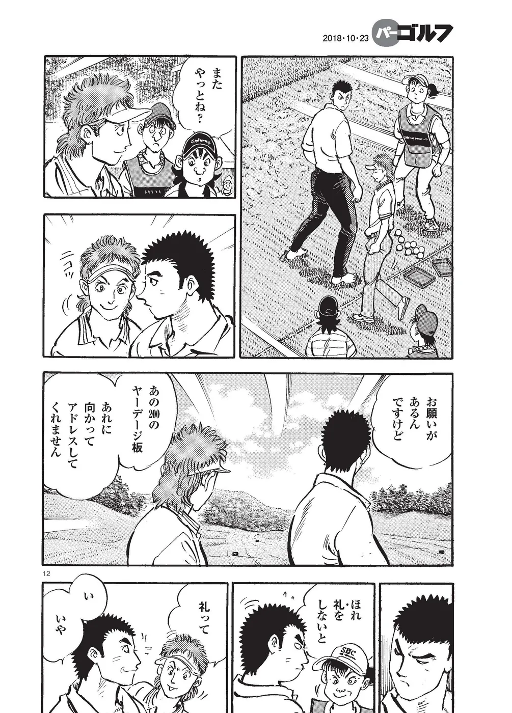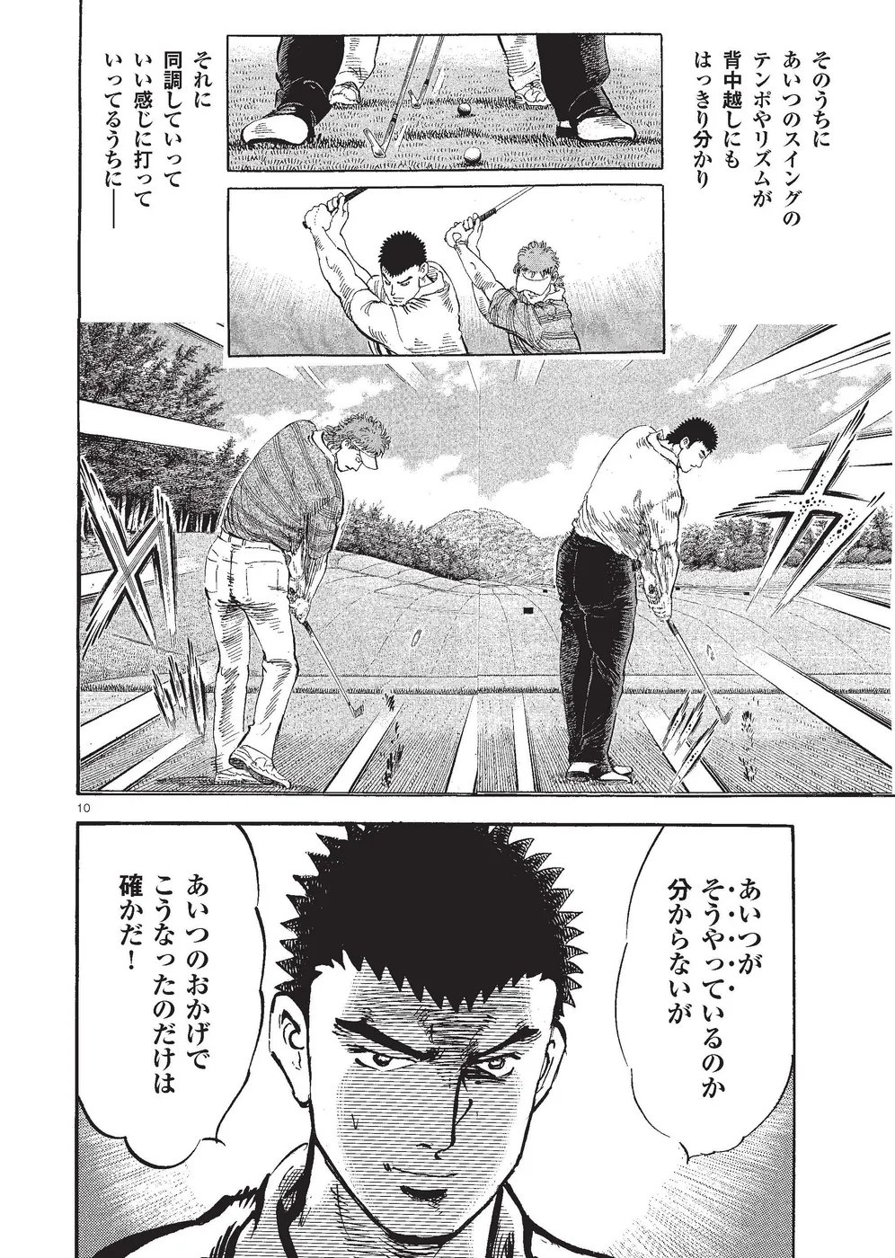 【第83巻あらすじ】KBSオーガスタ3日目、辛うじて予選通過した一丸は、アマ最年少での優勝宣言をした本阿弥尊に闘争心をかき立てられ、4打差を縮めるべくスタートから攻めのゴルフを展開。パットは不調ながら、手作りSWのショットの感触は上々で、INスタートの17番でバーディー奪取。順調にスコアを伸ばし迎えた最終ホール、同組の飛ばし屋のスイングを見盗って渾身のビッグドライブ。順位を8位に上げ、最終日は尊と同組になった。しかし、思わぬ人物が現れたことで一丸のショットに変化が―。