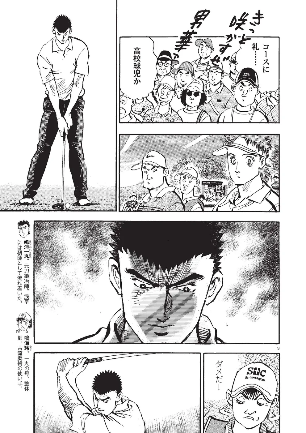 【第83巻あらすじ】KBSオーガスタ3日目、辛うじて予選通過した一丸は、アマ最年少での優勝宣言をした本阿弥尊に闘争心をかき立てられ、4打差を縮めるべくスタートから攻めのゴルフを展開。パットは不調ながら、手作りSWのショットの感触は上々で、INスタートの17番でバーディー奪取。順調にスコアを伸ばし迎えた最終ホール、同組の飛ばし屋のスイングを見盗って渾身のビッグドライブ。順位を8位に上げ、最終日は尊と同組になった。しかし、思わぬ人物が現れたことで一丸のショットに変化が―。