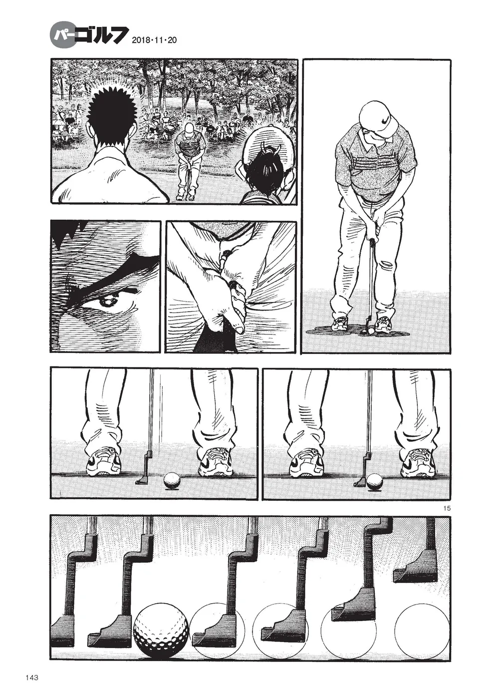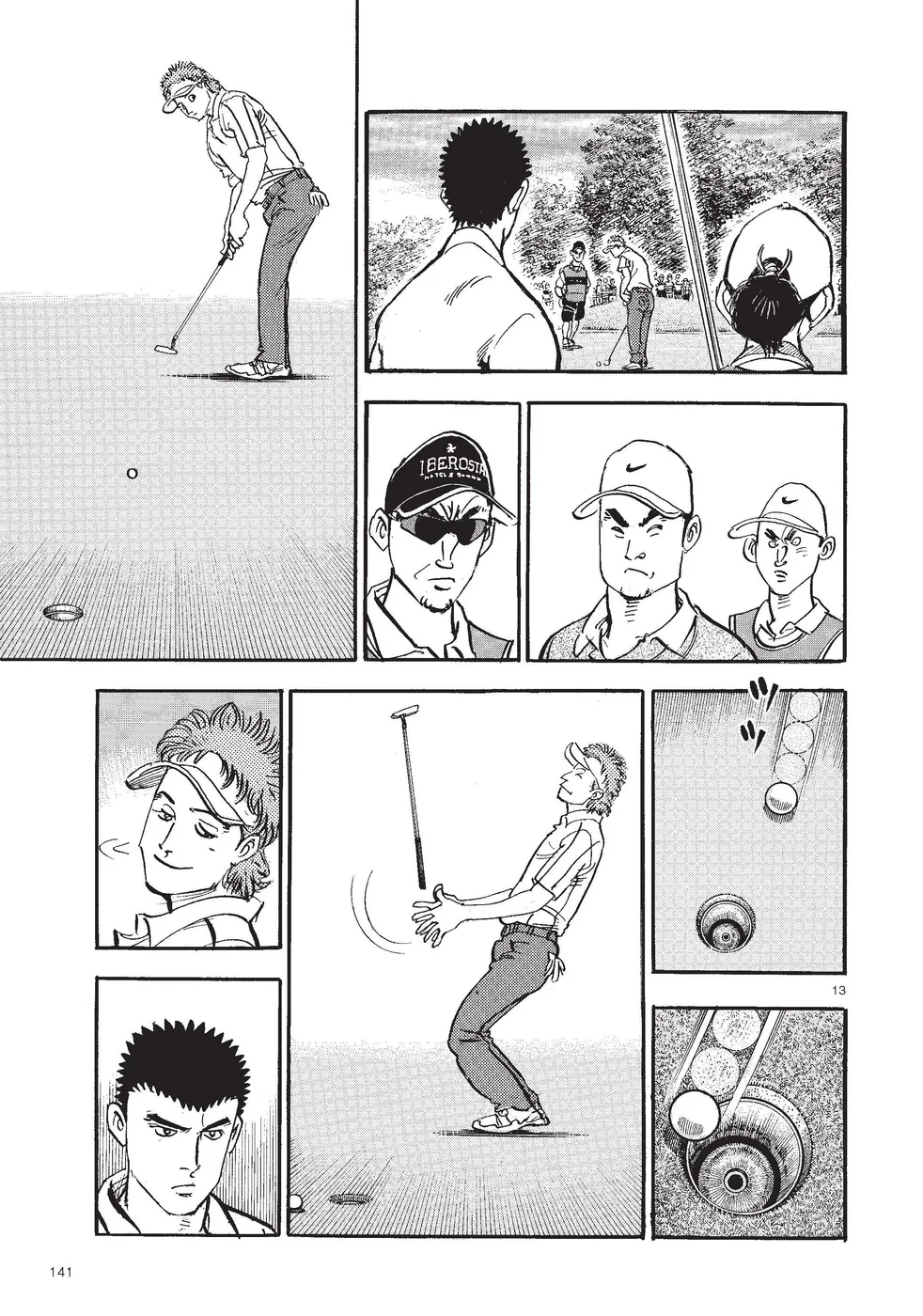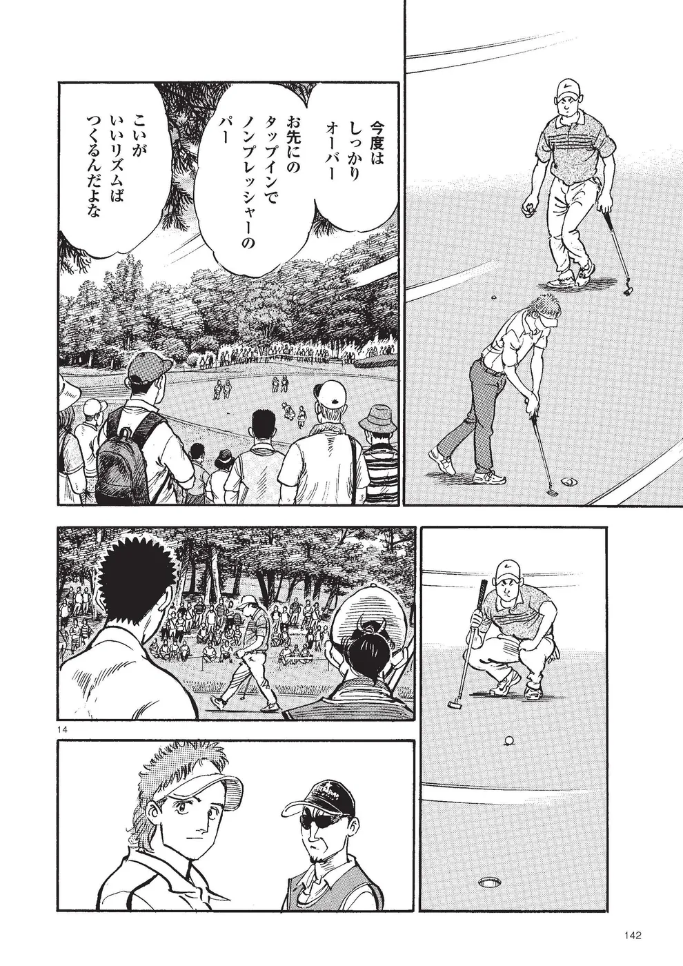 【第83巻あらすじ】KBSオーガスタ3日目、辛うじて予選通過した一丸は、アマ最年少での優勝宣言をした本阿弥尊に闘争心をかき立てられ、4打差を縮めるべくスタートから攻めのゴルフを展開。パットは不調ながら、手作りSWのショットの感触は上々で、INスタートの17番でバーディー奪取。順調にスコアを伸ばし迎えた最終ホール、同組の飛ばし屋のスイングを見盗って渾身のビッグドライブ。順位を8位に上げ、最終日は尊と同組になった。しかし、思わぬ人物が現れたことで一丸のショットに変化が―。