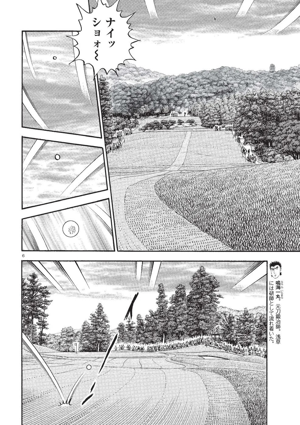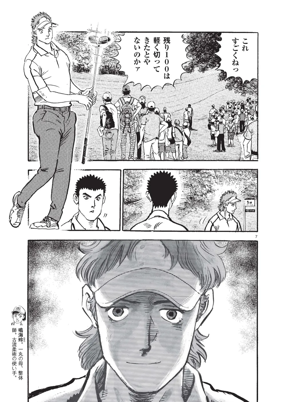 【第84巻あらすじ】KBSオーガスタ最終日。本阿弥尊と同組で7アンダー8位からのスタートとなった一丸。1番ホールにあの御園が突然現れ動揺したが、なんとかパーで切り抜け、迎えた2番、同組の時末の「ライジングパッド」に興味を抱いたことから、それをを見盗りボギーが先行。波に乗れないプレーが続く中、迎えた5番、尊のビッグドライブに影響されたか、第1打を右の林へ打ち込む。ところが第2打をカップに放り込み、連日のイーグル奪取!!負けじと尊もイーグルで食らいつきマッチプレー状態に。6番、トラブルショットをいきなり初めて握るグリップで打った一丸は……。