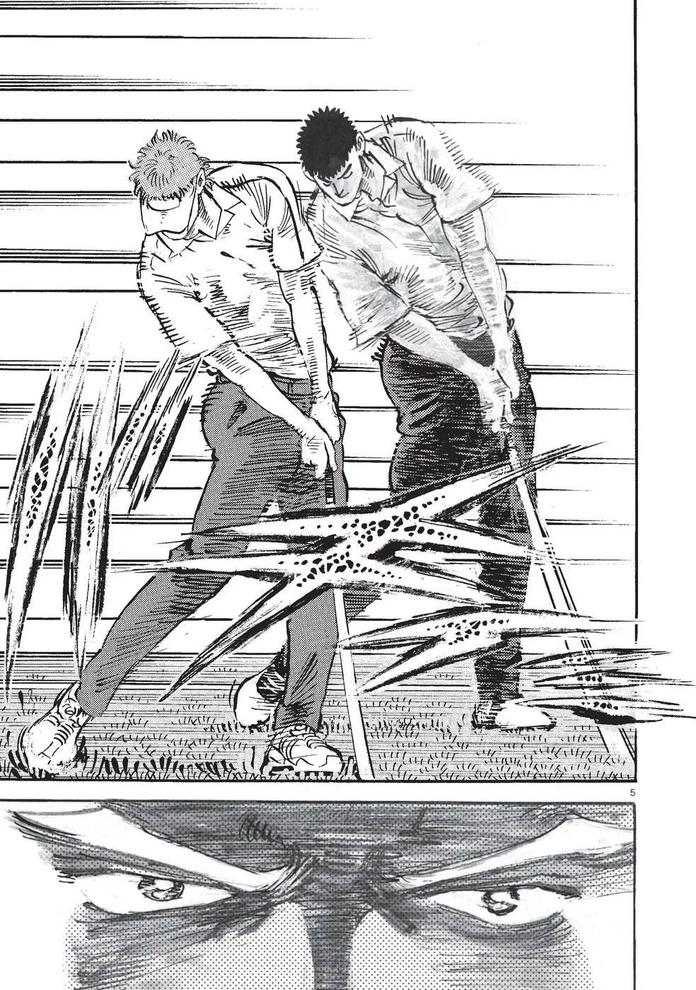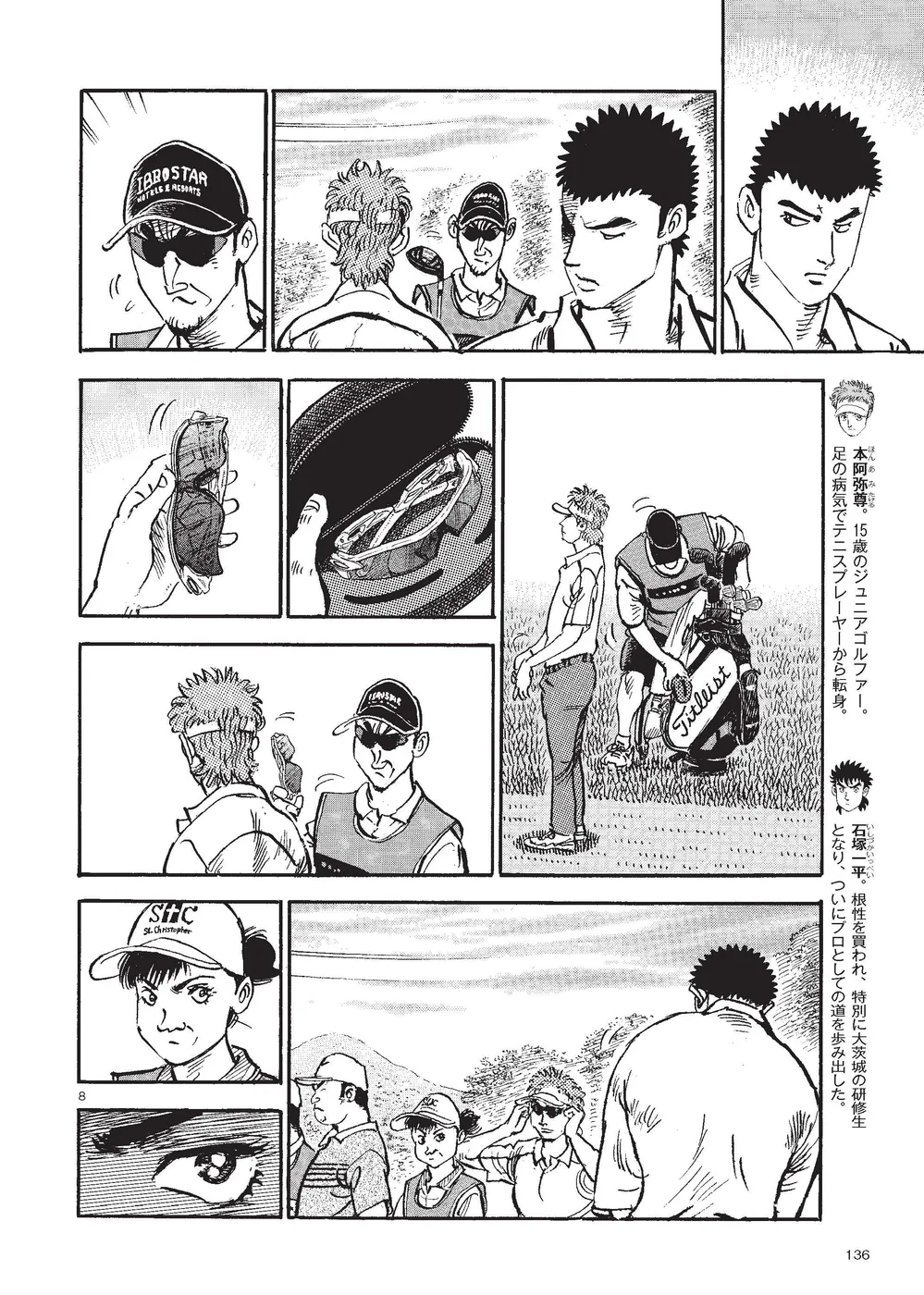【第84巻あらすじ】KBSオーガスタ最終日。本阿弥尊と同組で7アンダー8位からのスタートとなった一丸。1番ホールにあの御園が突然現れ動揺したが、なんとかパーで切り抜け、迎えた2番、同組の時末の「ライジングパッド」に興味を抱いたことから、それをを見盗りボギーが先行。波に乗れないプレーが続く中、迎えた5番、尊のビッグドライブに影響されたか、第1打を右の林へ打ち込む。ところが第2打をカップに放り込み、連日のイーグル奪取!!負けじと尊もイーグルで食らいつきマッチプレー状態に。6番、トラブルショットをいきなり初めて握るグリップで打った一丸は……。