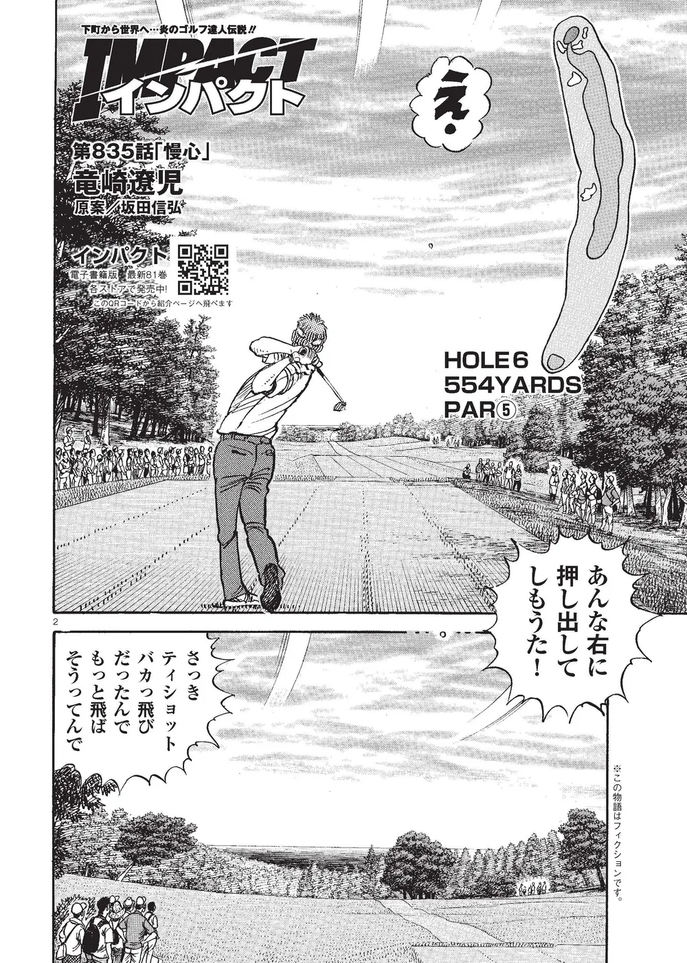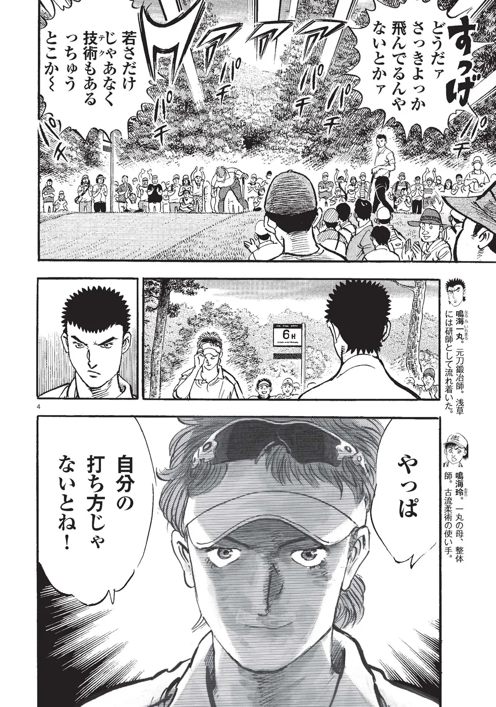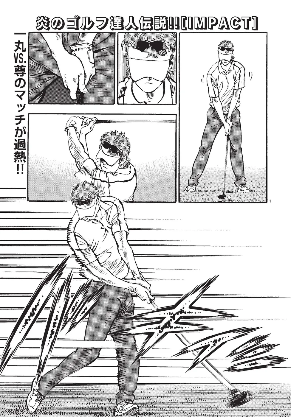 【第84巻あらすじ】KBSオーガスタ最終日。本阿弥尊と同組で7アンダー8位からのスタートとなった一丸。1番ホールにあの御園が突然現れ動揺したが、なんとかパーで切り抜け、迎えた2番、同組の時末の「ライジングパッド」に興味を抱いたことから、それをを見盗りボギーが先行。波に乗れないプレーが続く中、迎えた5番、尊のビッグドライブに影響されたか、第1打を右の林へ打ち込む。ところが第2打をカップに放り込み、連日のイーグル奪取!!負けじと尊もイーグルで食らいつきマッチプレー状態に。6番、トラブルショットをいきなり初めて握るグリップで打った一丸は……。