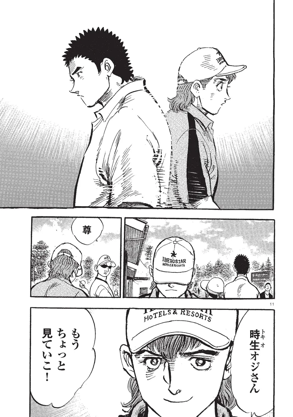 【第84巻あらすじ】KBSオーガスタ最終日。本阿弥尊と同組で7アンダー8位からのスタートとなった一丸。1番ホールにあの御園が突然現れ動揺したが、なんとかパーで切り抜け、迎えた2番、同組の時末の「ライジングパッド」に興味を抱いたことから、それをを見盗りボギーが先行。波に乗れないプレーが続く中、迎えた5番、尊のビッグドライブに影響されたか、第1打を右の林へ打ち込む。ところが第2打をカップに放り込み、連日のイーグル奪取!!負けじと尊もイーグルで食らいつきマッチプレー状態に。6番、トラブルショットをいきなり初めて握るグリップで打った一丸は……。