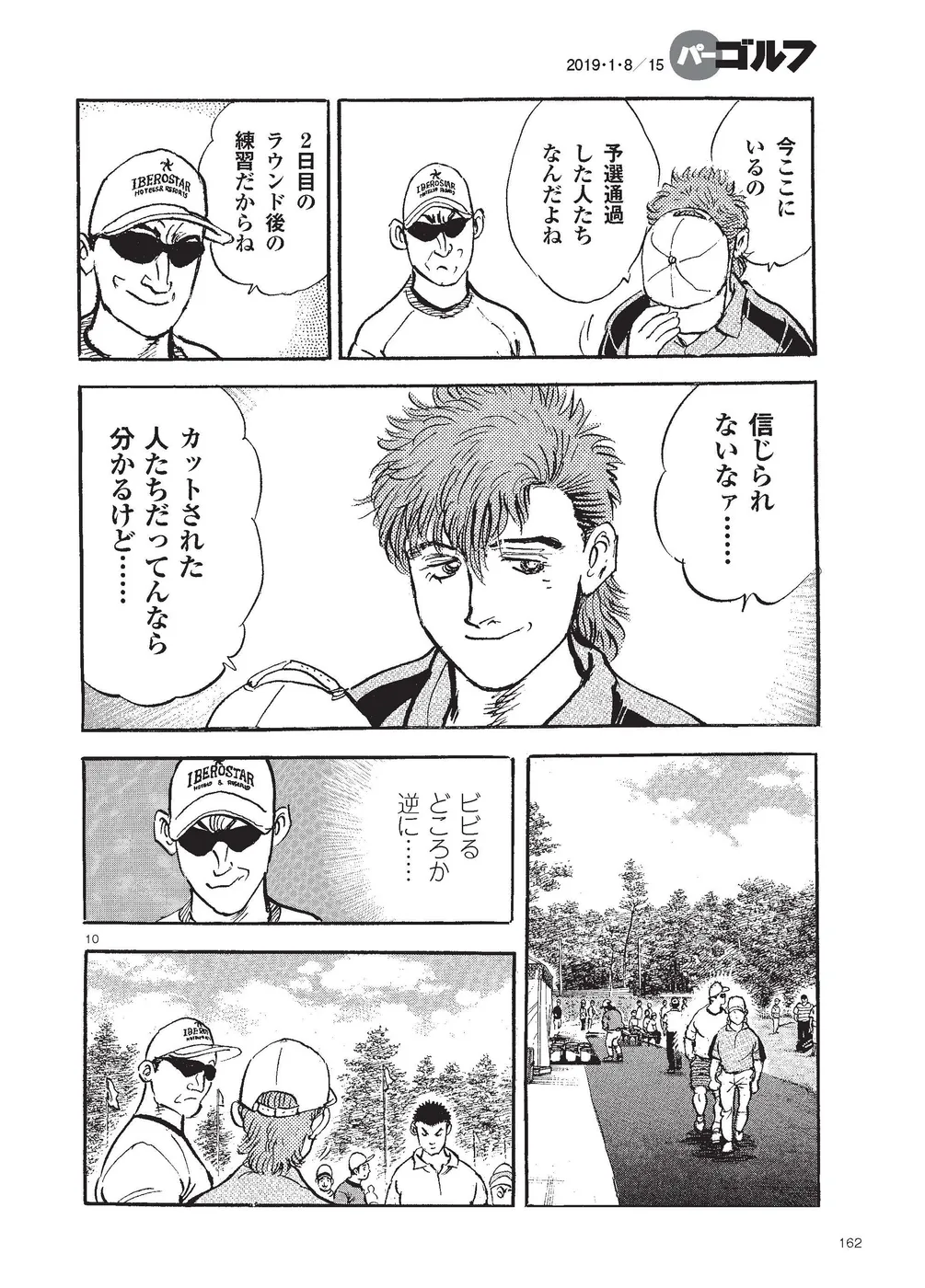 【第84巻あらすじ】KBSオーガスタ最終日。本阿弥尊と同組で7アンダー8位からのスタートとなった一丸。1番ホールにあの御園が突然現れ動揺したが、なんとかパーで切り抜け、迎えた2番、同組の時末の「ライジングパッド」に興味を抱いたことから、それをを見盗りボギーが先行。波に乗れないプレーが続く中、迎えた5番、尊のビッグドライブに影響されたか、第1打を右の林へ打ち込む。ところが第2打をカップに放り込み、連日のイーグル奪取!!負けじと尊もイーグルで食らいつきマッチプレー状態に。6番、トラブルショットをいきなり初めて握るグリップで打った一丸は……。