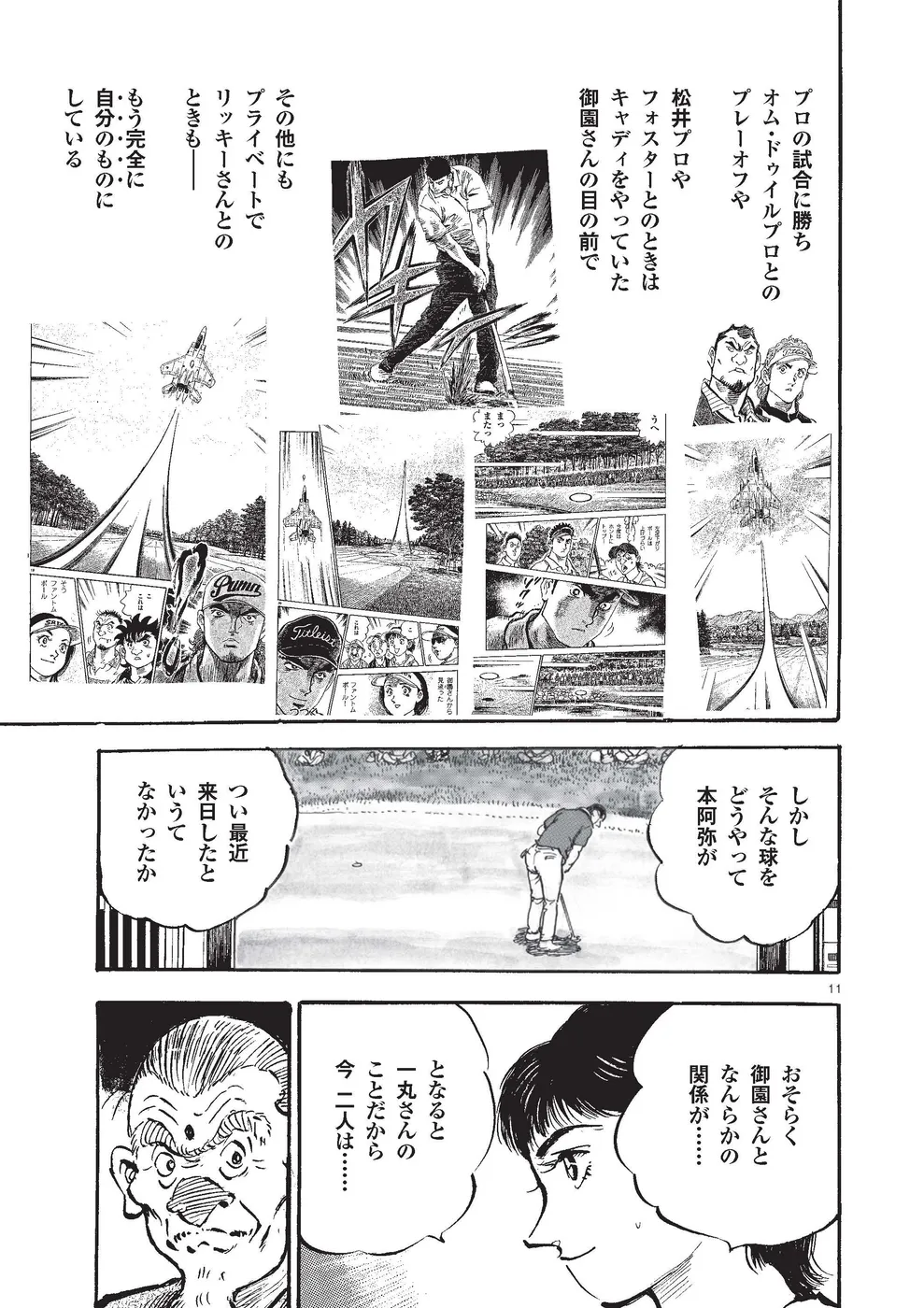 【第85巻あらすじ】KBSオーガスタ最終日、本阿弥尊と同組7アンダー、8位からのスタートとなった主人公一丸。5番ホールでは第2打を直接カップに放り込みイーグル奪取。さらに尊もイーグルで追従し、試合はマッチプレー状態に突入する。そんな中、一丸は同組の時末のスイングを知らずのうちに己の中に取り込み、武道家としての自分本来のスイングを作りかけていた。15番を終え、尊とは3打差2ダウン。最終ホールに向かう中、調子が上向く一丸に勝機はあるのか!?下町から世界へ!炎のゴルフ達人伝説がついに完結!