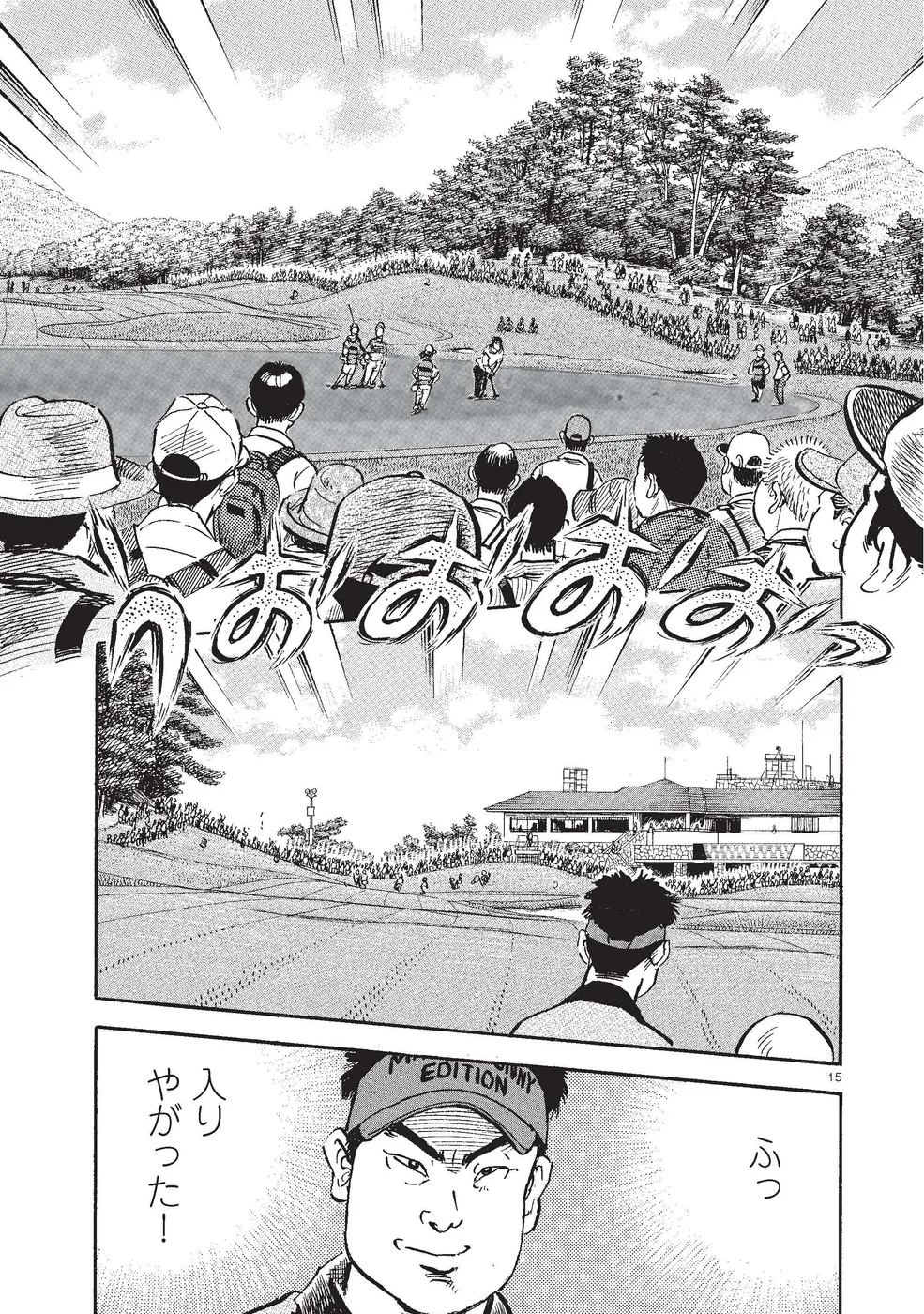 【第85巻あらすじ】KBSオーガスタ最終日、本阿弥尊と同組7アンダー、8位からのスタートとなった主人公一丸。5番ホールでは第2打を直接カップに放り込みイーグル奪取。さらに尊もイーグルで追従し、試合はマッチプレー状態に突入する。そんな中、一丸は同組の時末のスイングを知らずのうちに己の中に取り込み、武道家としての自分本来のスイングを作りかけていた。15番を終え、尊とは3打差2ダウン。最終ホールに向かう中、調子が上向く一丸に勝機はあるのか!?下町から世界へ!炎のゴルフ達人伝説がついに完結!