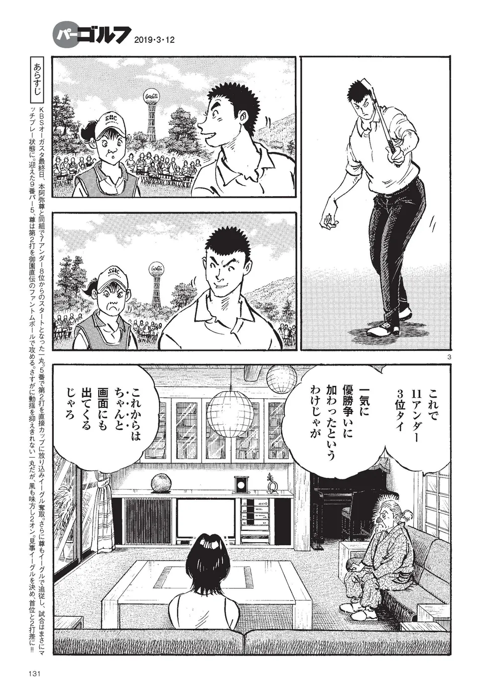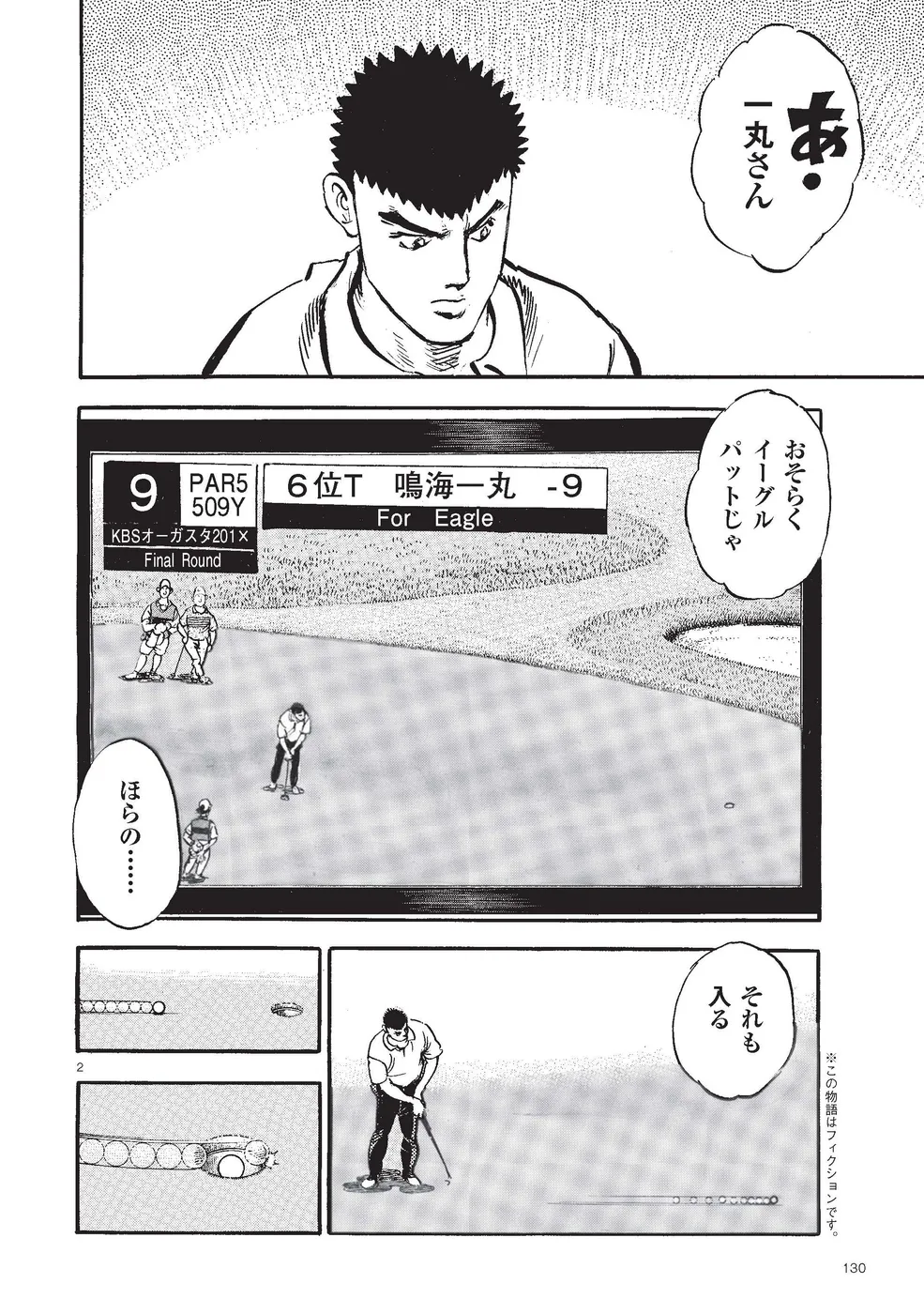 【第85巻あらすじ】KBSオーガスタ最終日、本阿弥尊と同組7アンダー、8位からのスタートとなった主人公一丸。5番ホールでは第2打を直接カップに放り込みイーグル奪取。さらに尊もイーグルで追従し、試合はマッチプレー状態に突入する。そんな中、一丸は同組の時末のスイングを知らずのうちに己の中に取り込み、武道家としての自分本来のスイングを作りかけていた。15番を終え、尊とは3打差2ダウン。最終ホールに向かう中、調子が上向く一丸に勝機はあるのか!?下町から世界へ!炎のゴルフ達人伝説がついに完結!
