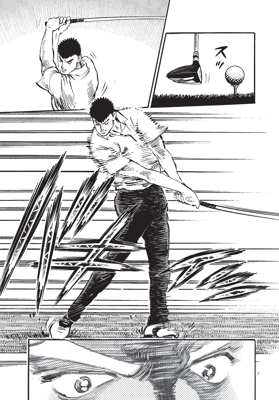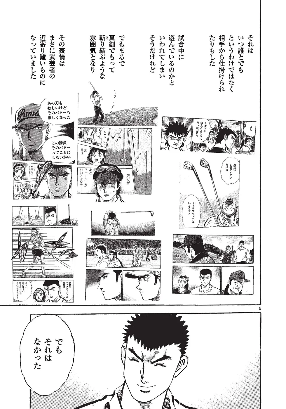 【第85巻あらすじ】KBSオーガスタ最終日、本阿弥尊と同組7アンダー、8位からのスタートとなった主人公一丸。5番ホールでは第2打を直接カップに放り込みイーグル奪取。さらに尊もイーグルで追従し、試合はマッチプレー状態に突入する。そんな中、一丸は同組の時末のスイングを知らずのうちに己の中に取り込み、武道家としての自分本来のスイングを作りかけていた。15番を終え、尊とは3打差2ダウン。最終ホールに向かう中、調子が上向く一丸に勝機はあるのか!?下町から世界へ!炎のゴルフ達人伝説がついに完結!