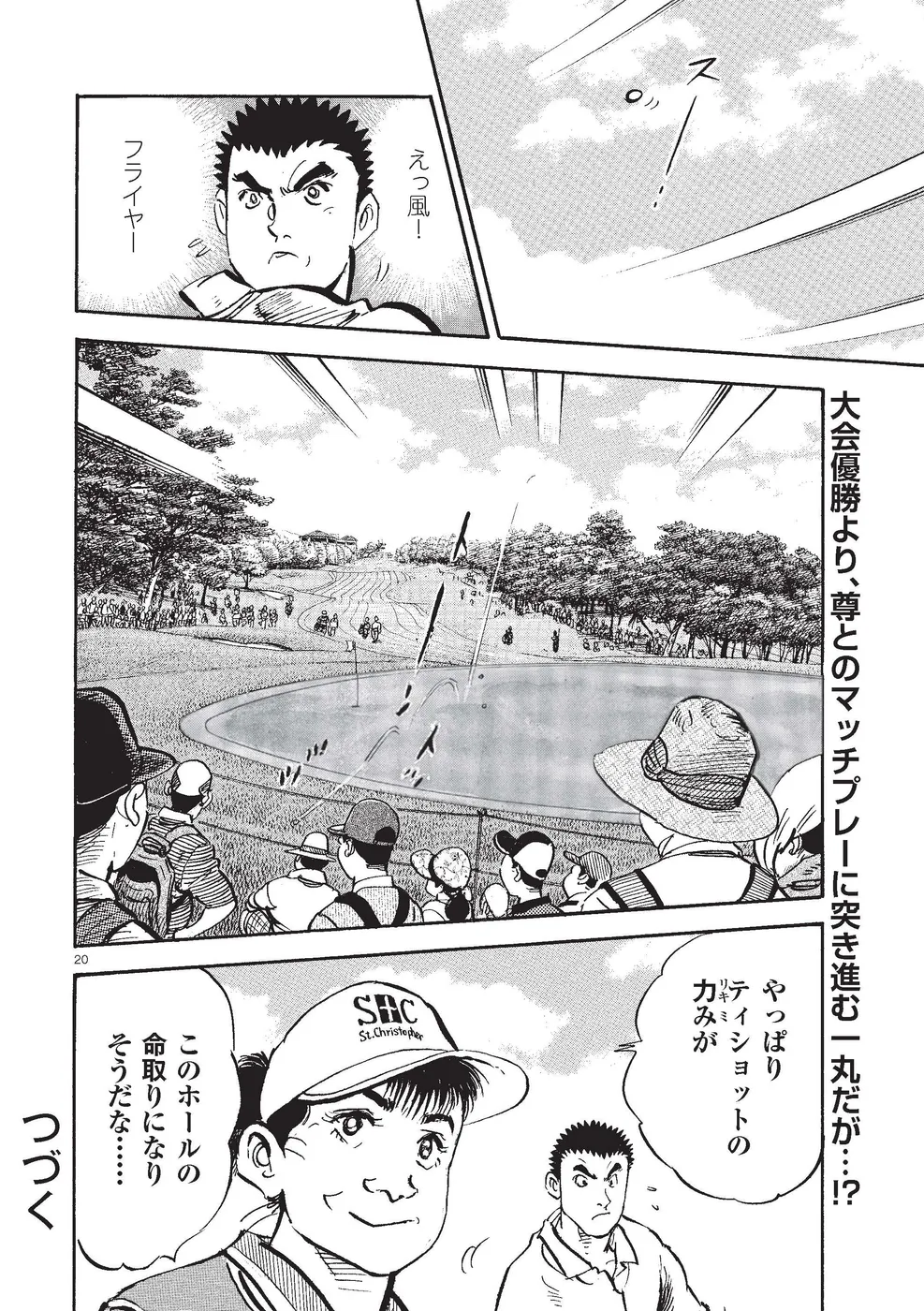 【第85巻あらすじ】KBSオーガスタ最終日、本阿弥尊と同組7アンダー、8位からのスタートとなった主人公一丸。5番ホールでは第2打を直接カップに放り込みイーグル奪取。さらに尊もイーグルで追従し、試合はマッチプレー状態に突入する。そんな中、一丸は同組の時末のスイングを知らずのうちに己の中に取り込み、武道家としての自分本来のスイングを作りかけていた。15番を終え、尊とは3打差2ダウン。最終ホールに向かう中、調子が上向く一丸に勝機はあるのか!?下町から世界へ!炎のゴルフ達人伝説がついに完結!