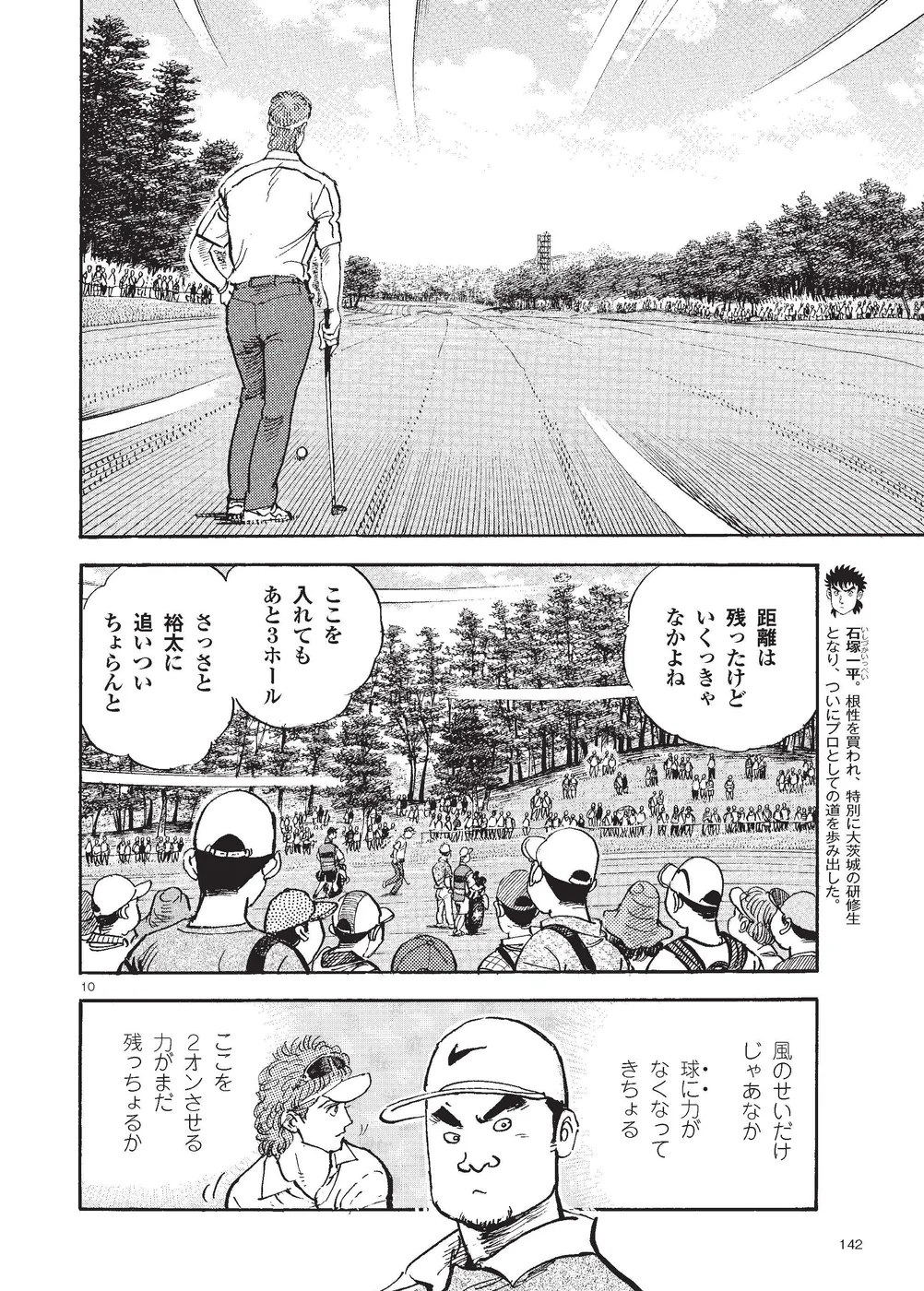 【第85巻あらすじ】KBSオーガスタ最終日、本阿弥尊と同組7アンダー、8位からのスタートとなった主人公一丸。5番ホールでは第2打を直接カップに放り込みイーグル奪取。さらに尊もイーグルで追従し、試合はマッチプレー状態に突入する。そんな中、一丸は同組の時末のスイングを知らずのうちに己の中に取り込み、武道家としての自分本来のスイングを作りかけていた。15番を終え、尊とは3打差2ダウン。最終ホールに向かう中、調子が上向く一丸に勝機はあるのか!?下町から世界へ!炎のゴルフ達人伝説がついに完結!