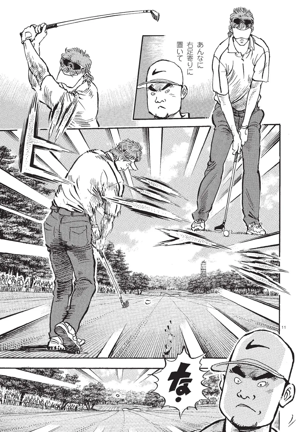 【第85巻あらすじ】KBSオーガスタ最終日、本阿弥尊と同組7アンダー、8位からのスタートとなった主人公一丸。5番ホールでは第2打を直接カップに放り込みイーグル奪取。さらに尊もイーグルで追従し、試合はマッチプレー状態に突入する。そんな中、一丸は同組の時末のスイングを知らずのうちに己の中に取り込み、武道家としての自分本来のスイングを作りかけていた。15番を終え、尊とは3打差2ダウン。最終ホールに向かう中、調子が上向く一丸に勝機はあるのか!?下町から世界へ!炎のゴルフ達人伝説がついに完結!