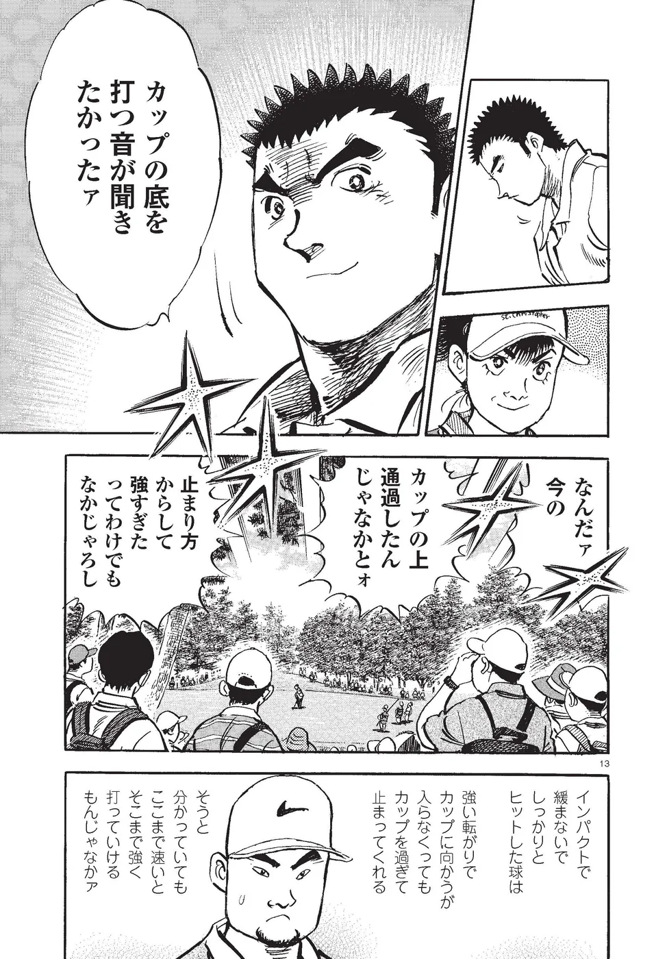 【第85巻あらすじ】KBSオーガスタ最終日、本阿弥尊と同組7アンダー、8位からのスタートとなった主人公一丸。5番ホールでは第2打を直接カップに放り込みイーグル奪取。さらに尊もイーグルで追従し、試合はマッチプレー状態に突入する。そんな中、一丸は同組の時末のスイングを知らずのうちに己の中に取り込み、武道家としての自分本来のスイングを作りかけていた。15番を終え、尊とは3打差2ダウン。最終ホールに向かう中、調子が上向く一丸に勝機はあるのか!?下町から世界へ!炎のゴルフ達人伝説がついに完結!