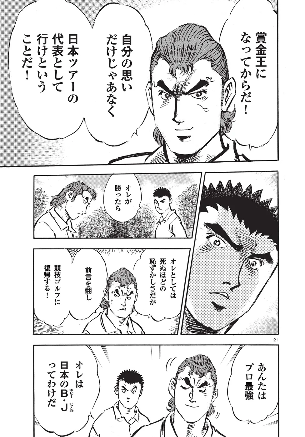 【第85巻あらすじ】KBSオーガスタ最終日、本阿弥尊と同組7アンダー、8位からのスタートとなった主人公一丸。5番ホールでは第2打を直接カップに放り込みイーグル奪取。さらに尊もイーグルで追従し、試合はマッチプレー状態に突入する。そんな中、一丸は同組の時末のスイングを知らずのうちに己の中に取り込み、武道家としての自分本来のスイングを作りかけていた。15番を終え、尊とは3打差2ダウン。最終ホールに向かう中、調子が上向く一丸に勝機はあるのか!?下町から世界へ!炎のゴルフ達人伝説がついに完結!