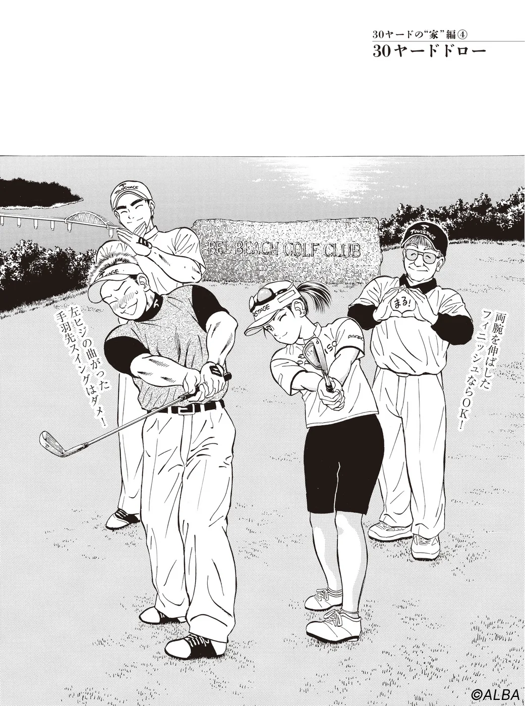 【30ヤードの“家”編|シリーズ概要】「どうしても上手くなりたい」と懇願してきたのは、会社の先輩から“万年100叩きのいつも百太郎”と揶揄される逸茂尺太郎(いつも しゃくたろう)。周りを見返したい思いをもって、宮里流の門戸をくぐった百太郎は、自分自身の“家”を完成させることができるのか…?(指導:宮里優/脚本:かわさき健/作画:本島幸久)