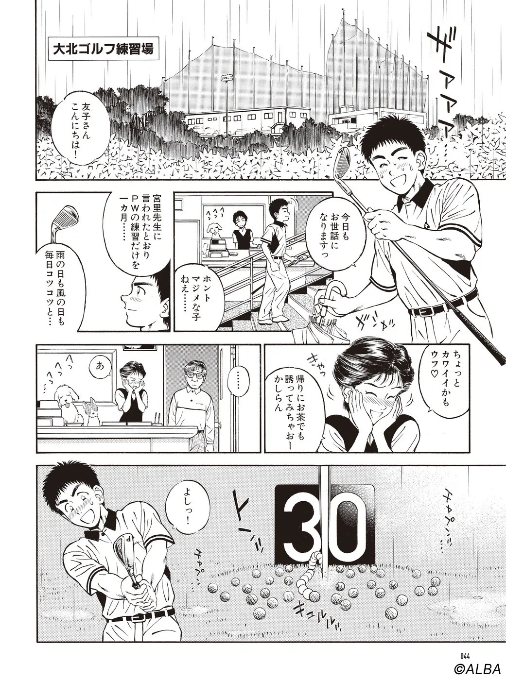 【30ヤードの“家”編 シリーズ概要】「どうしても上手くなりたい」と懇願してきたのは、会社の先輩から“万年100叩きのいつも百太郎”と揶揄される逸茂尺太郎(いつも しゃくたろう)。周りを見返したい思いをもって、宮里流の門戸をくぐった百太郎は、自分自身の“家”を完成させることができるのか…?(指導:宮里優/脚本:かわさき健/作画:本島幸久)
