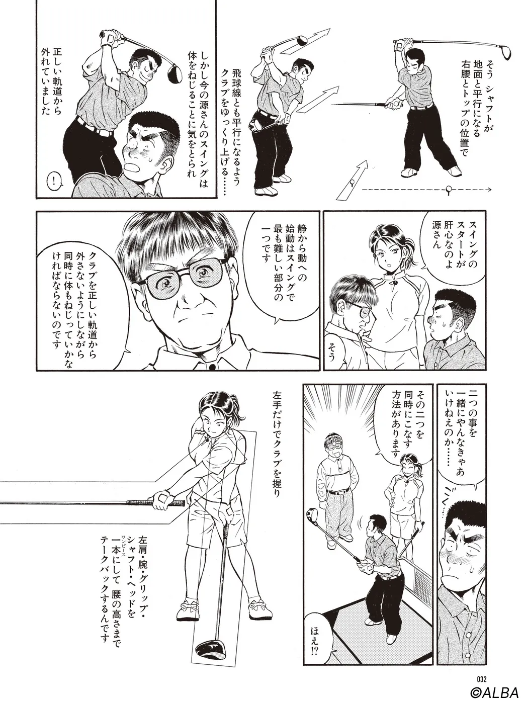 漫画レッスン 宮里道場【飛距離アップ 源さん編】第4話|上二軸・下一軸